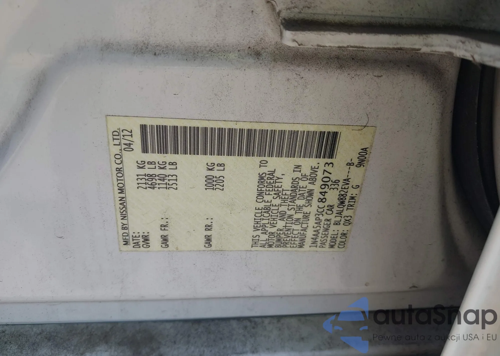 • VIN 1N4AA5AP3CC849073