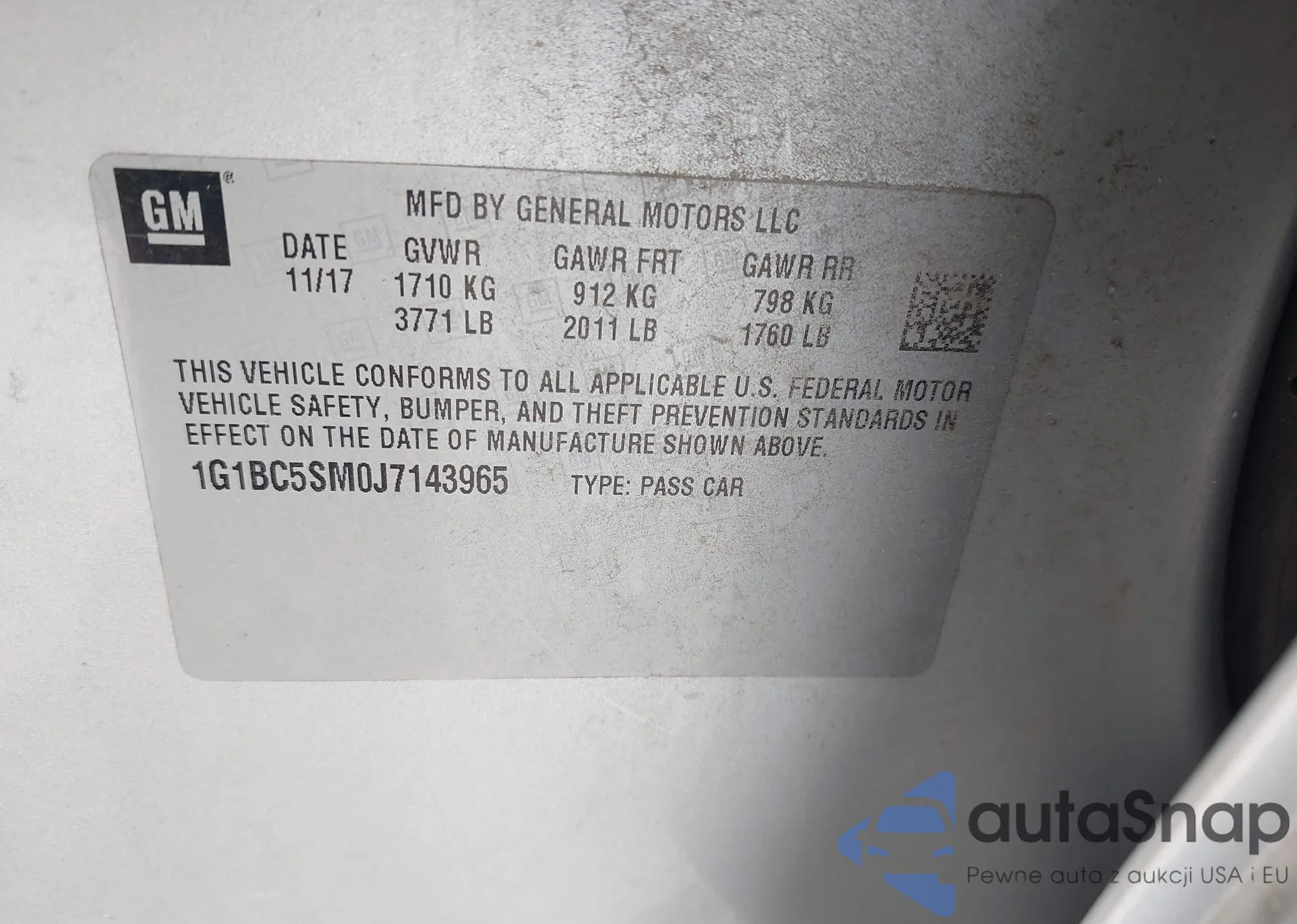 • VIN 1G1BC5SM0J7143965