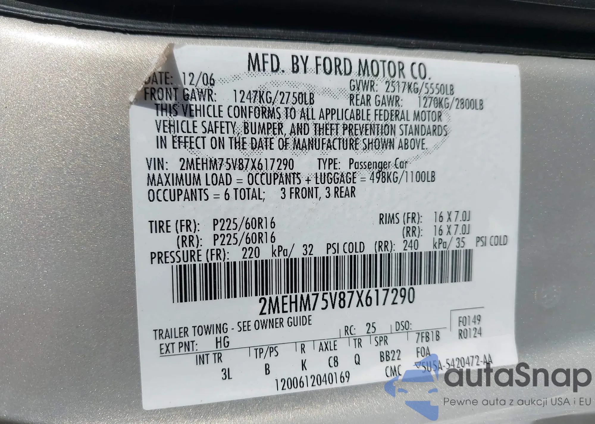 LOT: 43326669 VIN: 5N1AA08A57N712916