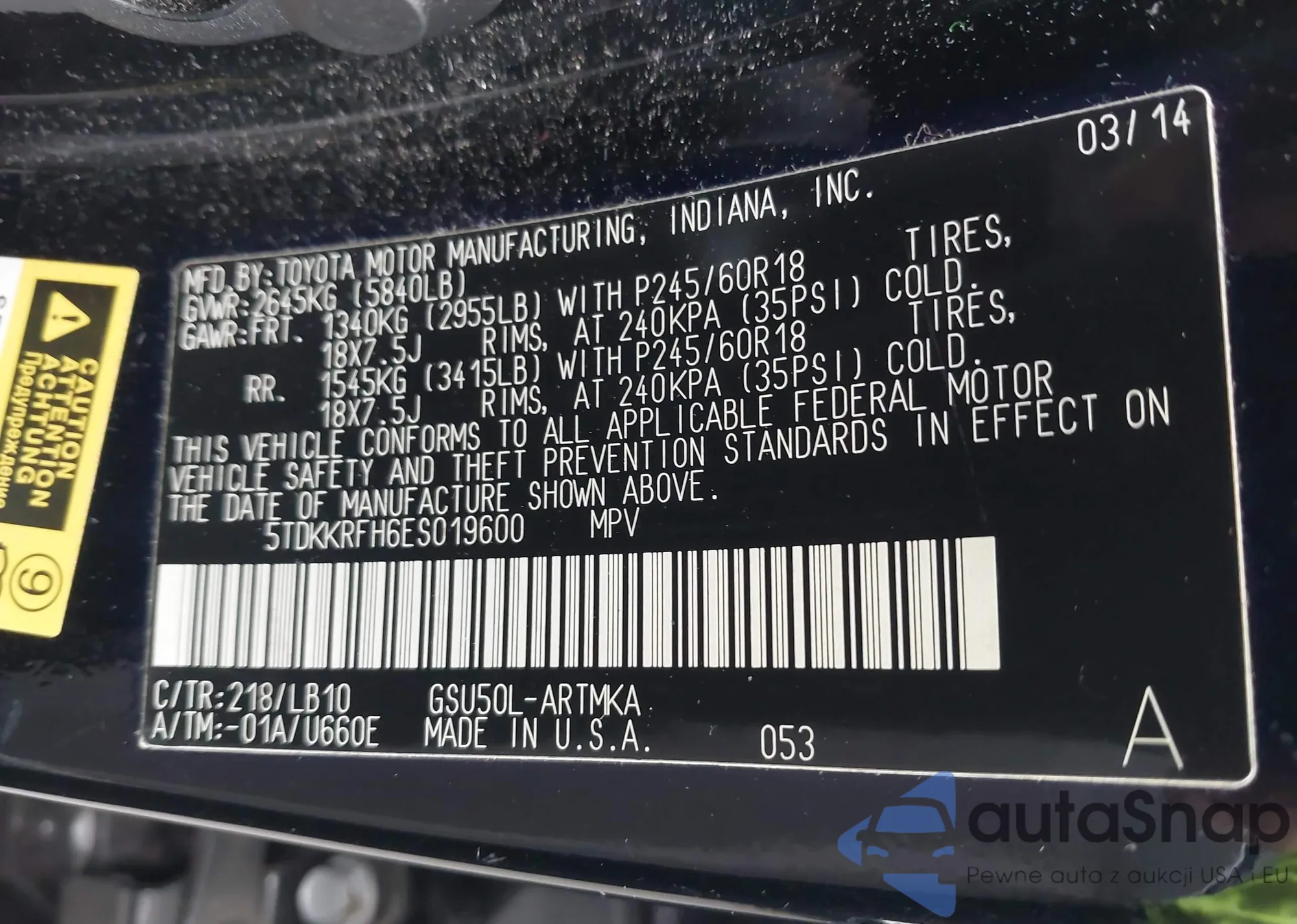 LOT: 43299065 VIN: 5TDKKRFH6ES019600
