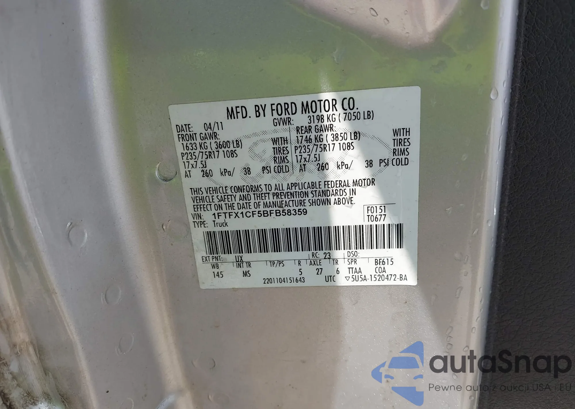 • VIN 1FTFX1CF5BFB58359