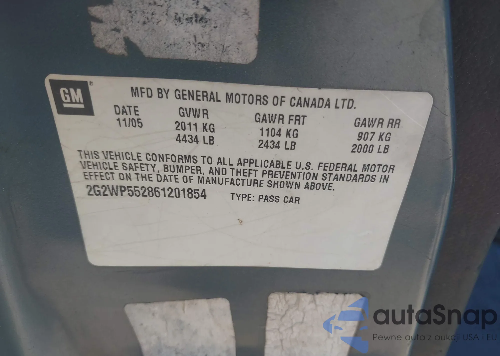 • VIN 2G2WP552861201854