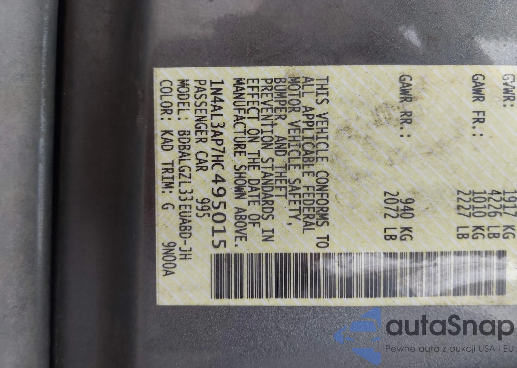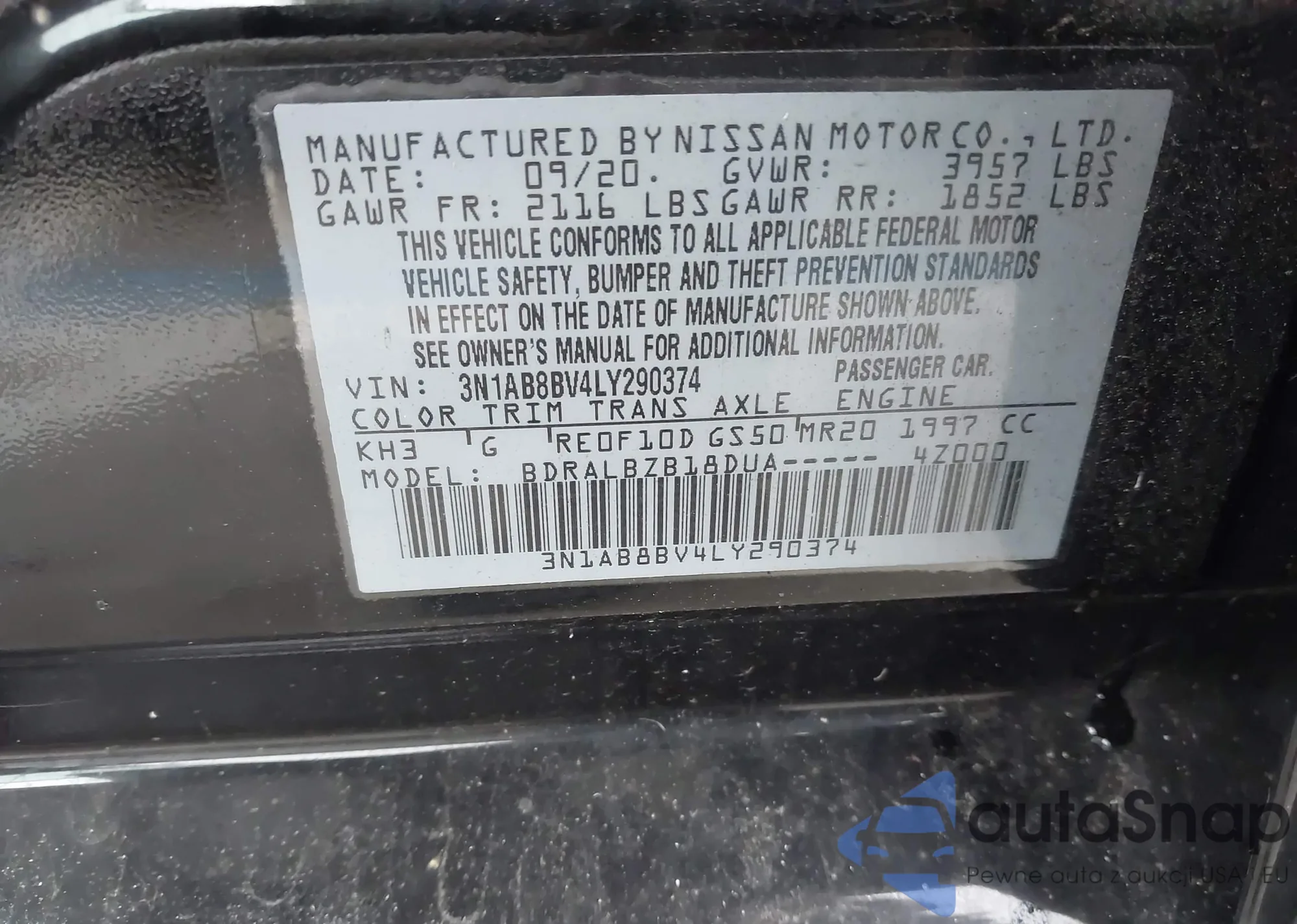 • VIN 3N1AB8BV4LY270223