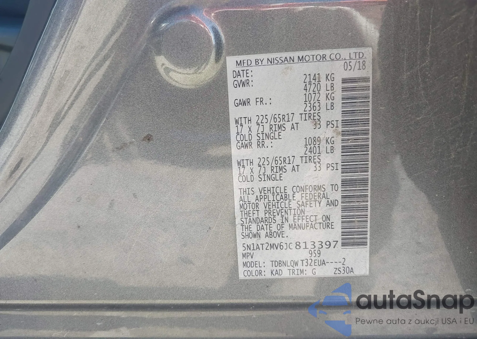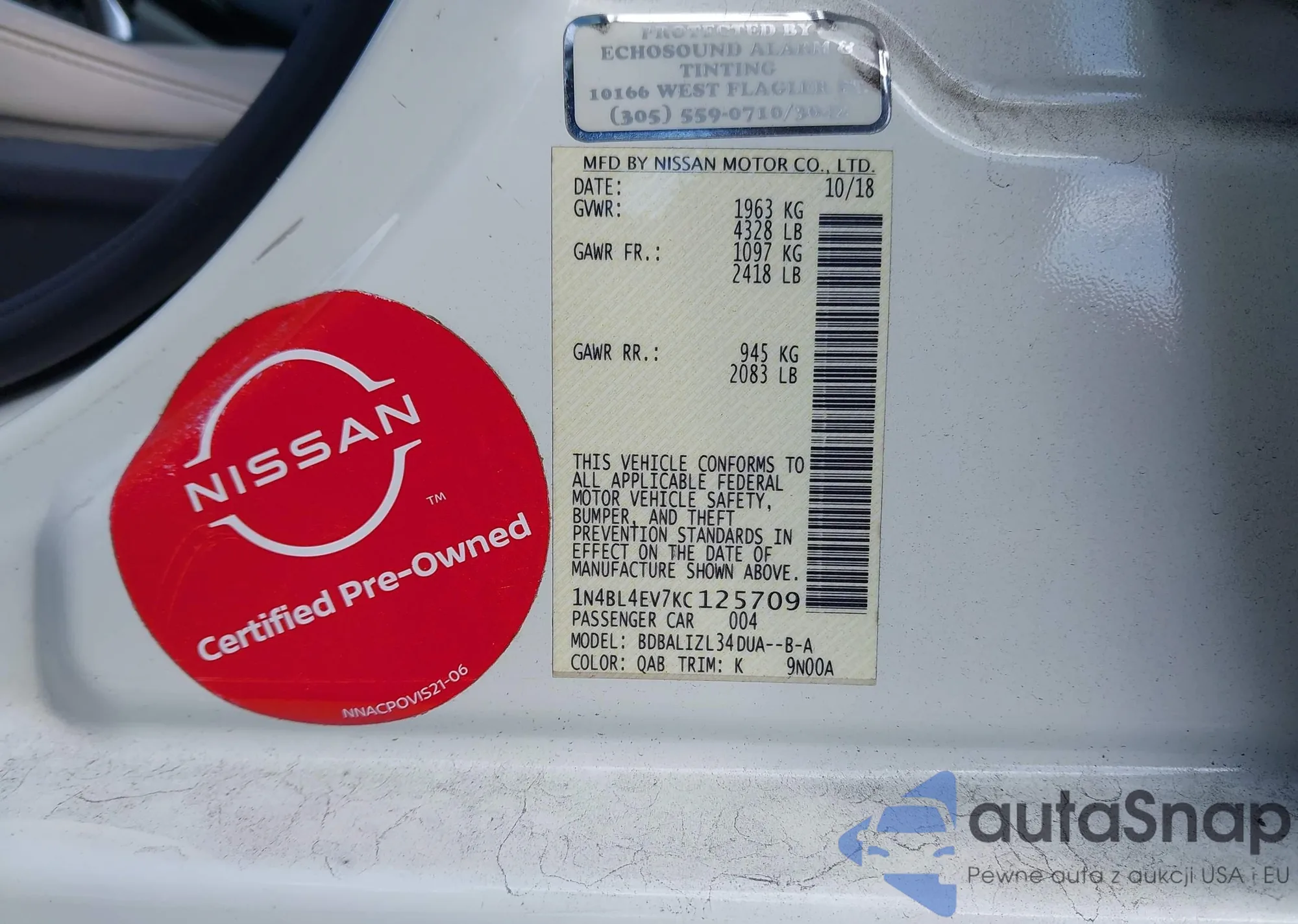 • VIN 1N4BL4EV7KC125709