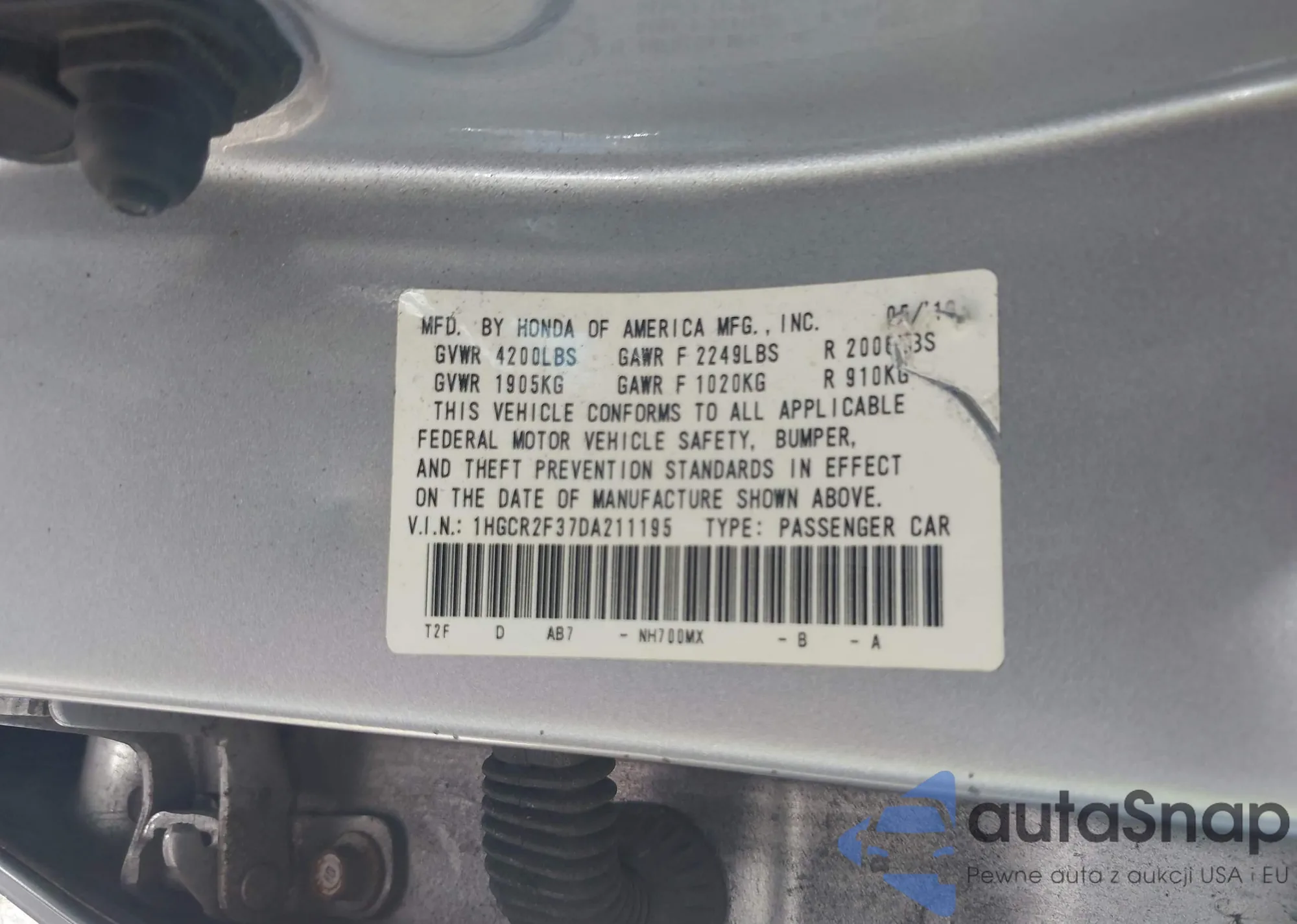 LOT: 43347748 VIN: 1HGCR2F37DA211195