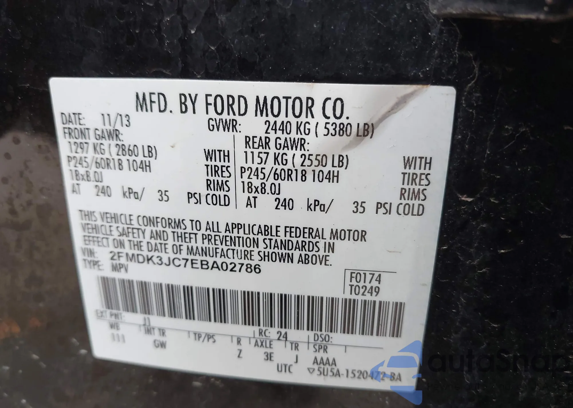 • VIN 1FADP3F21EL225076