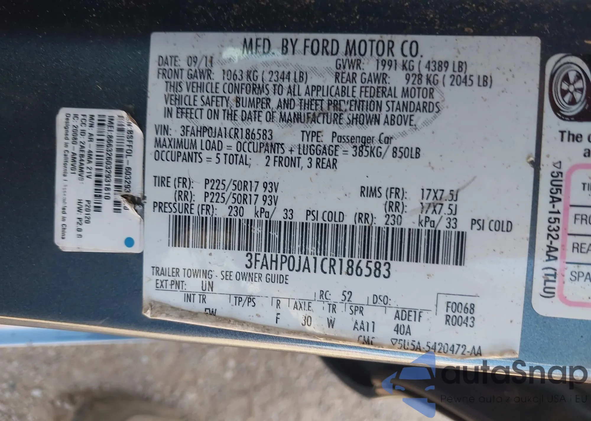 LOT: 43244107 VIN: 3FAHP0JA2CR298468