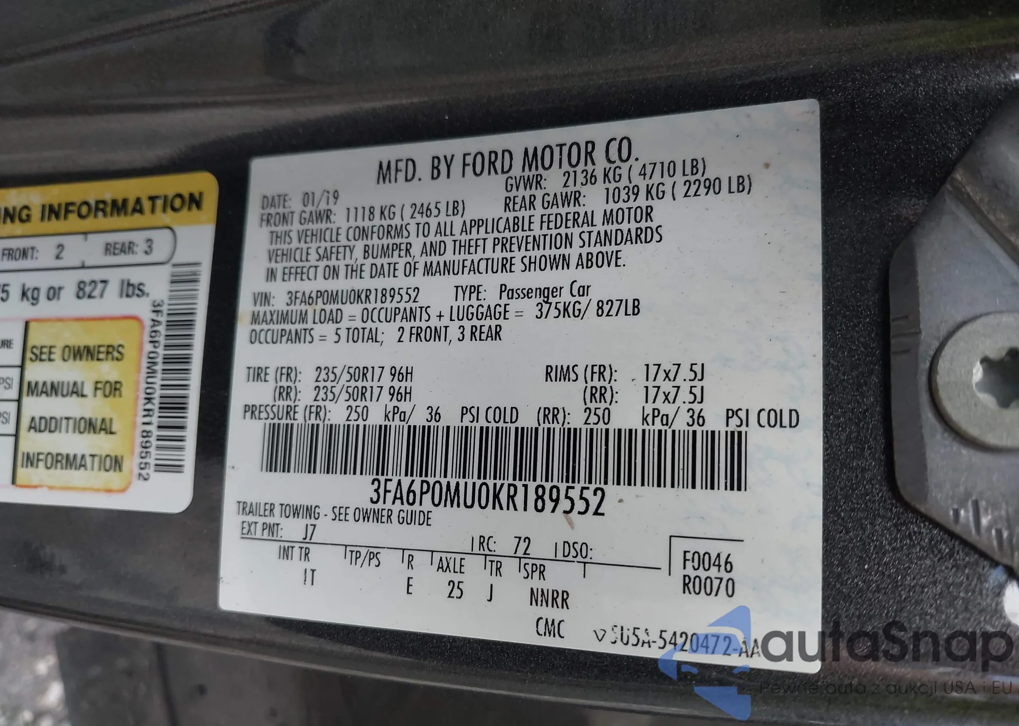 • VIN 3FA6P0MU0KR189552