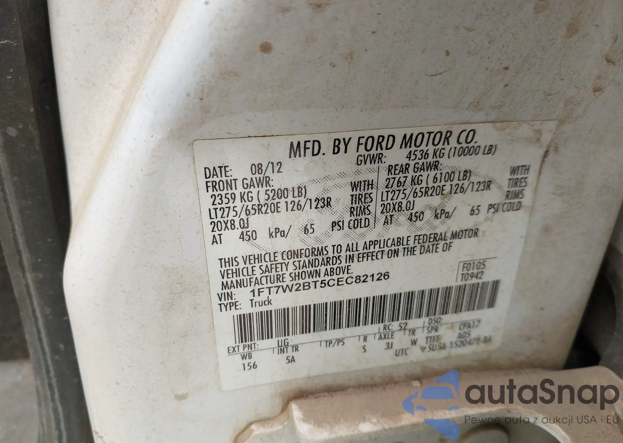LOT: 43127747 VIN: 1FT7W2BT5CEC82126