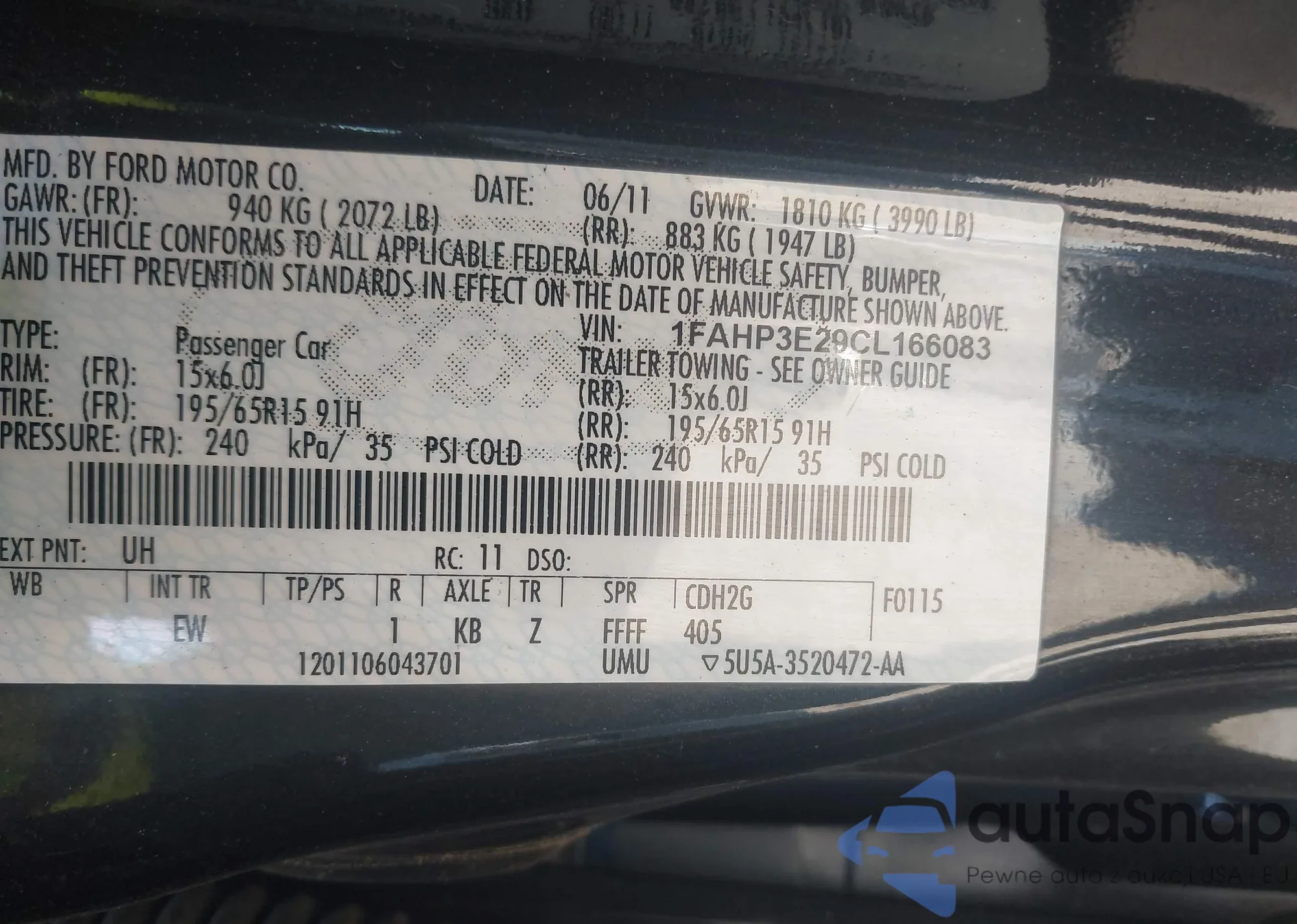 • VIN 1FAHP3E29CL166083