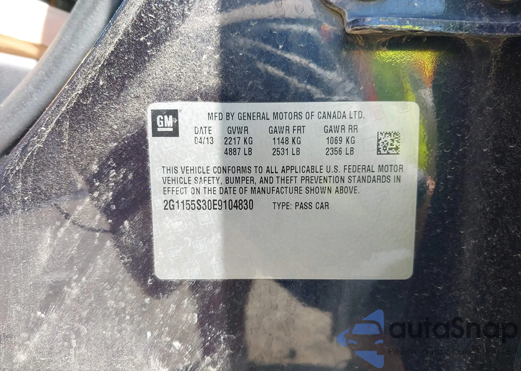 • VIN 2G1155S30E9104830