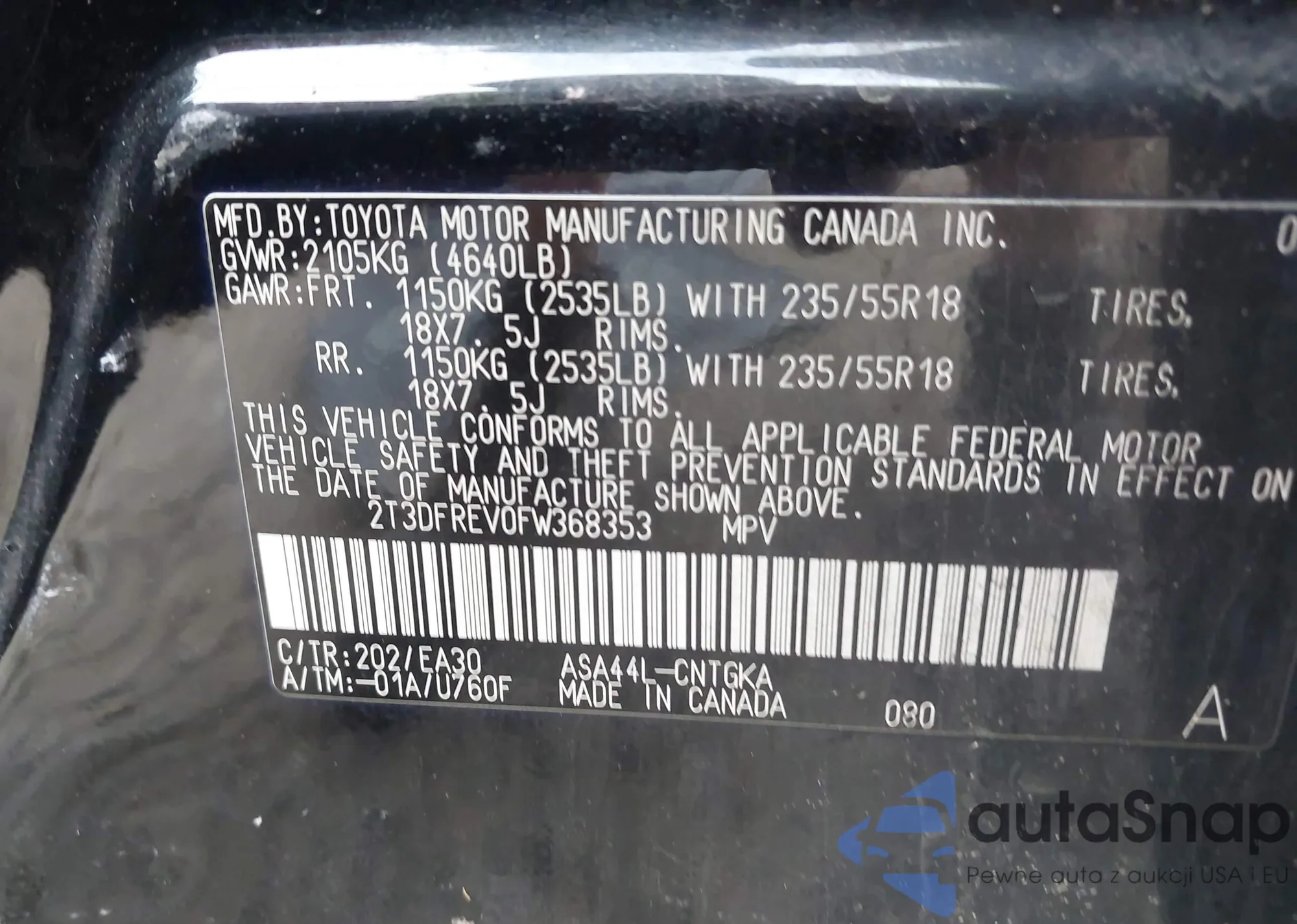 LOT: 34508503 VIN: JTDKDTB38F1093195