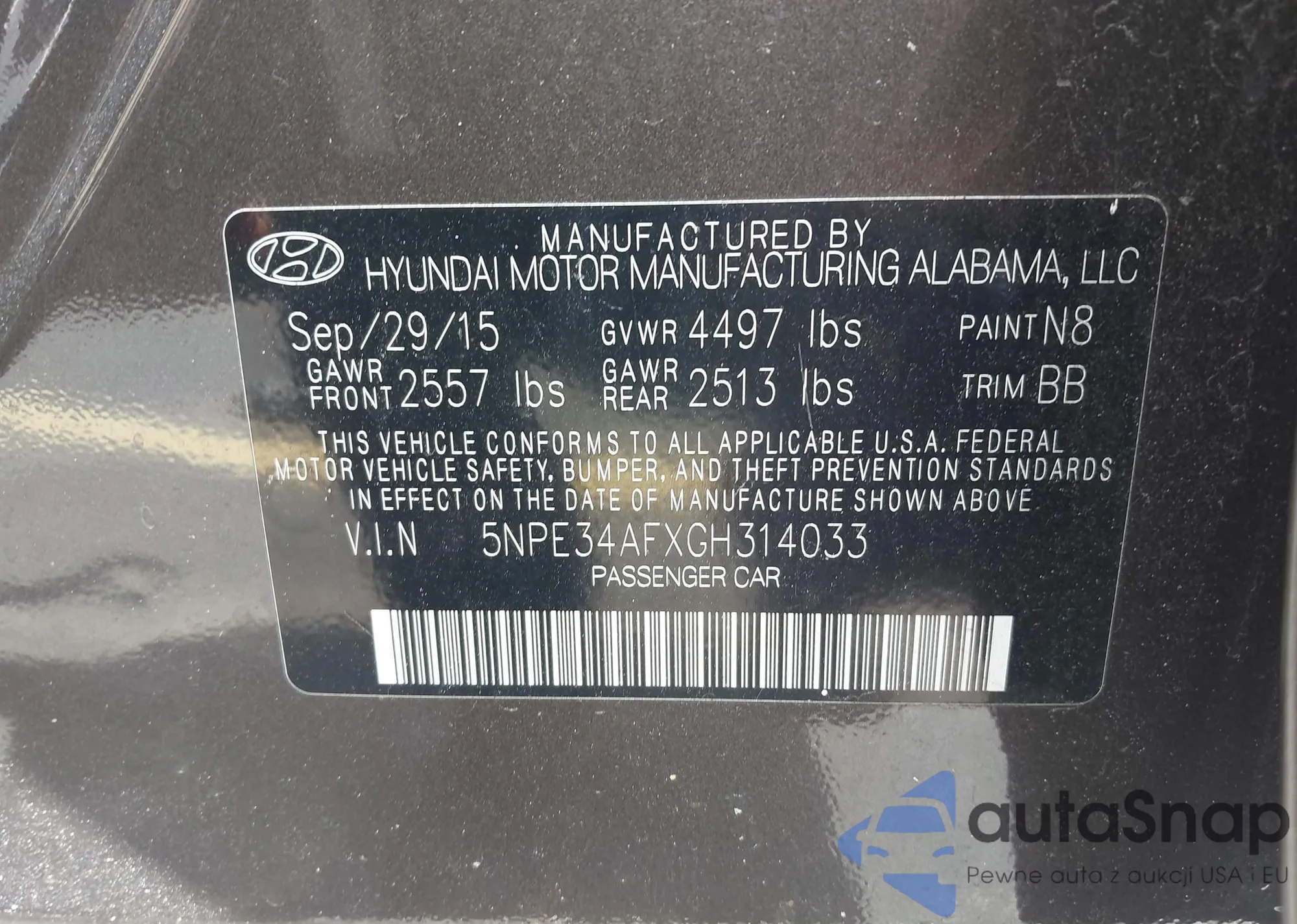 • VIN 5NPE34AFXGH314033