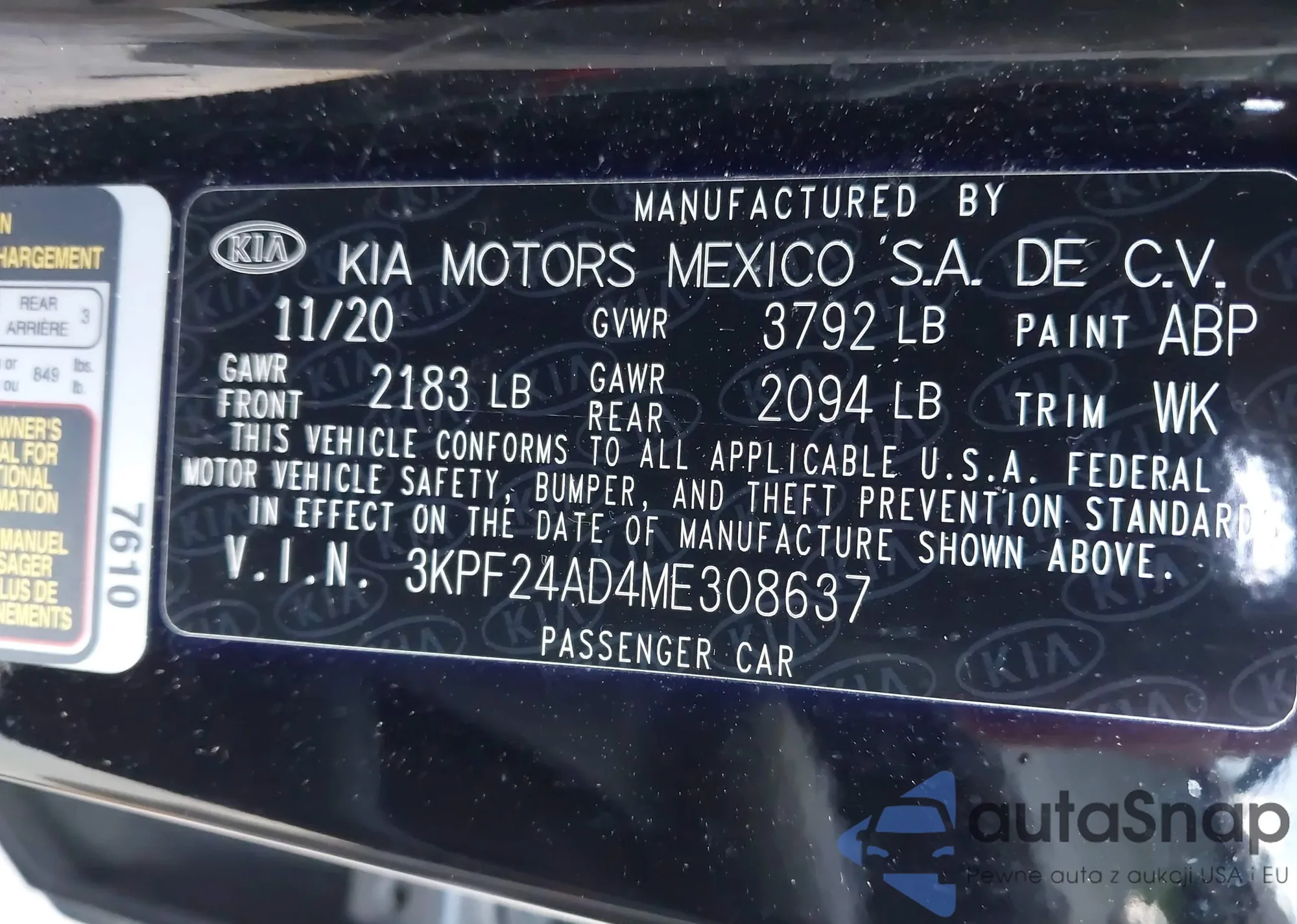 • VIN 3KPF24AD4ME308637