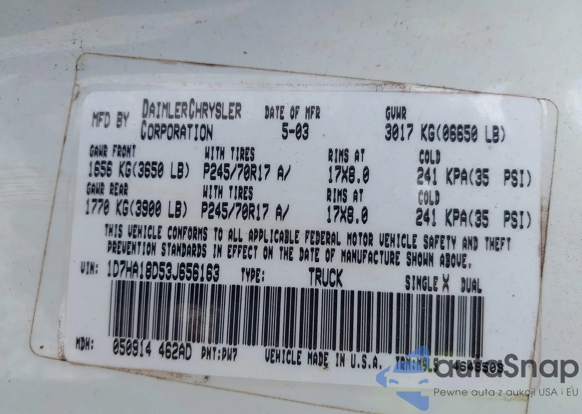 • VIN 3KPFT4DE5SE037893