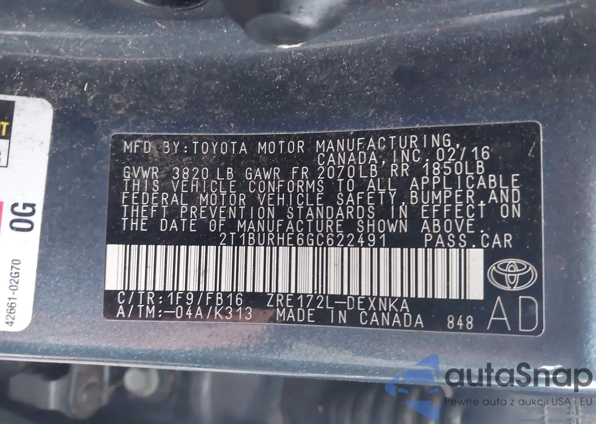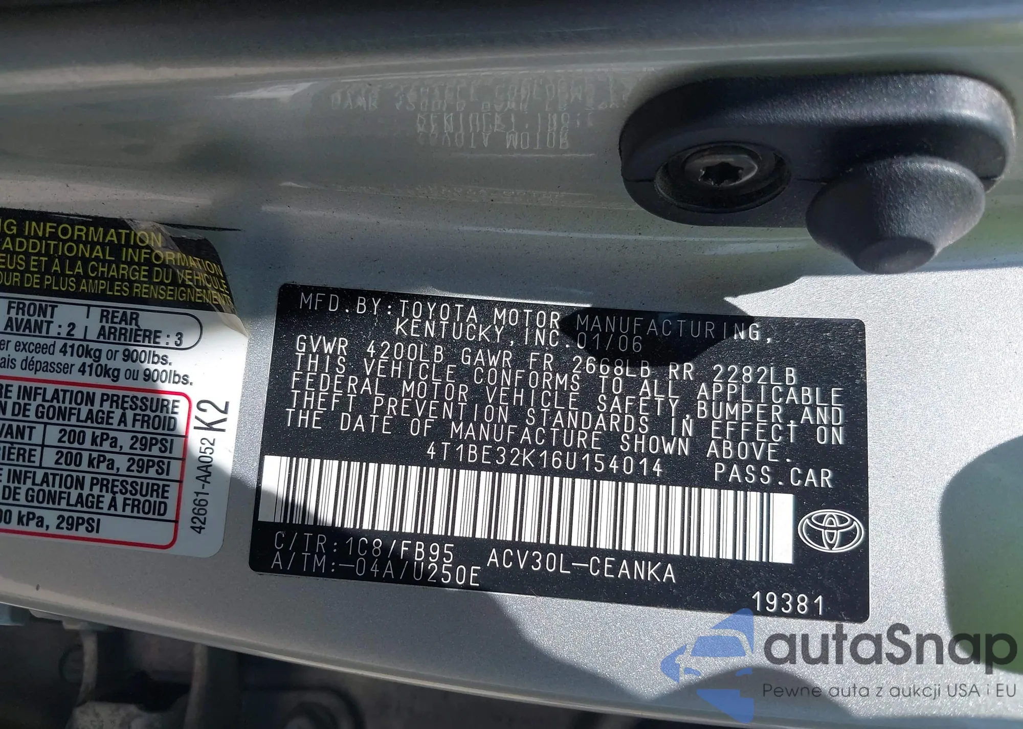 • VIN 4T1BE32K16U154014
