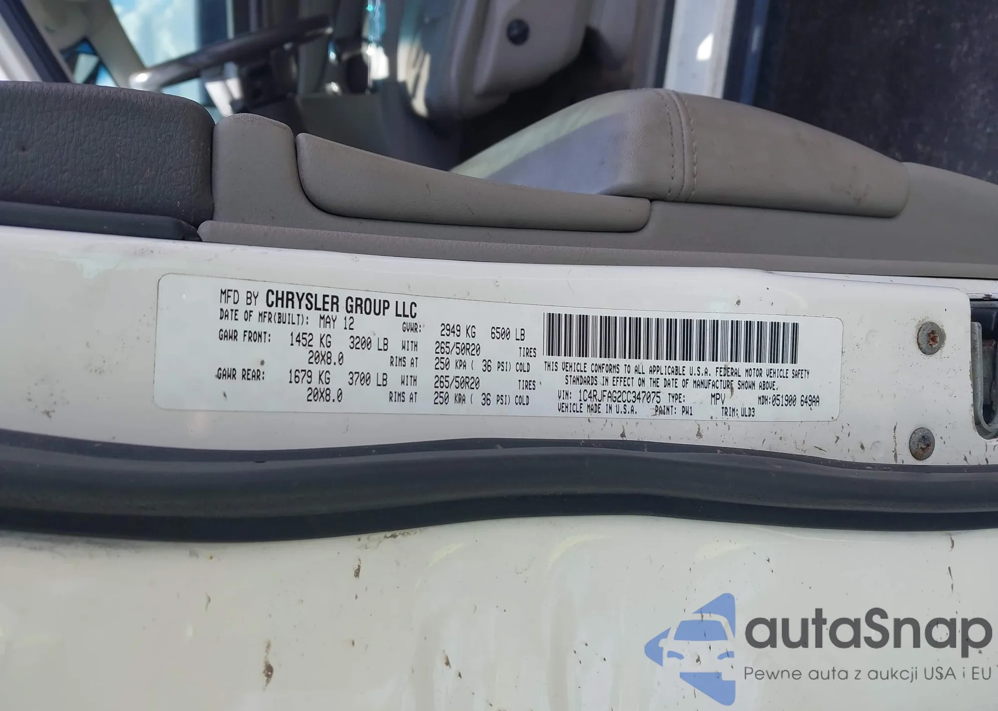 LOT: 43312397 VIN: 1C4RJEATXCC306944