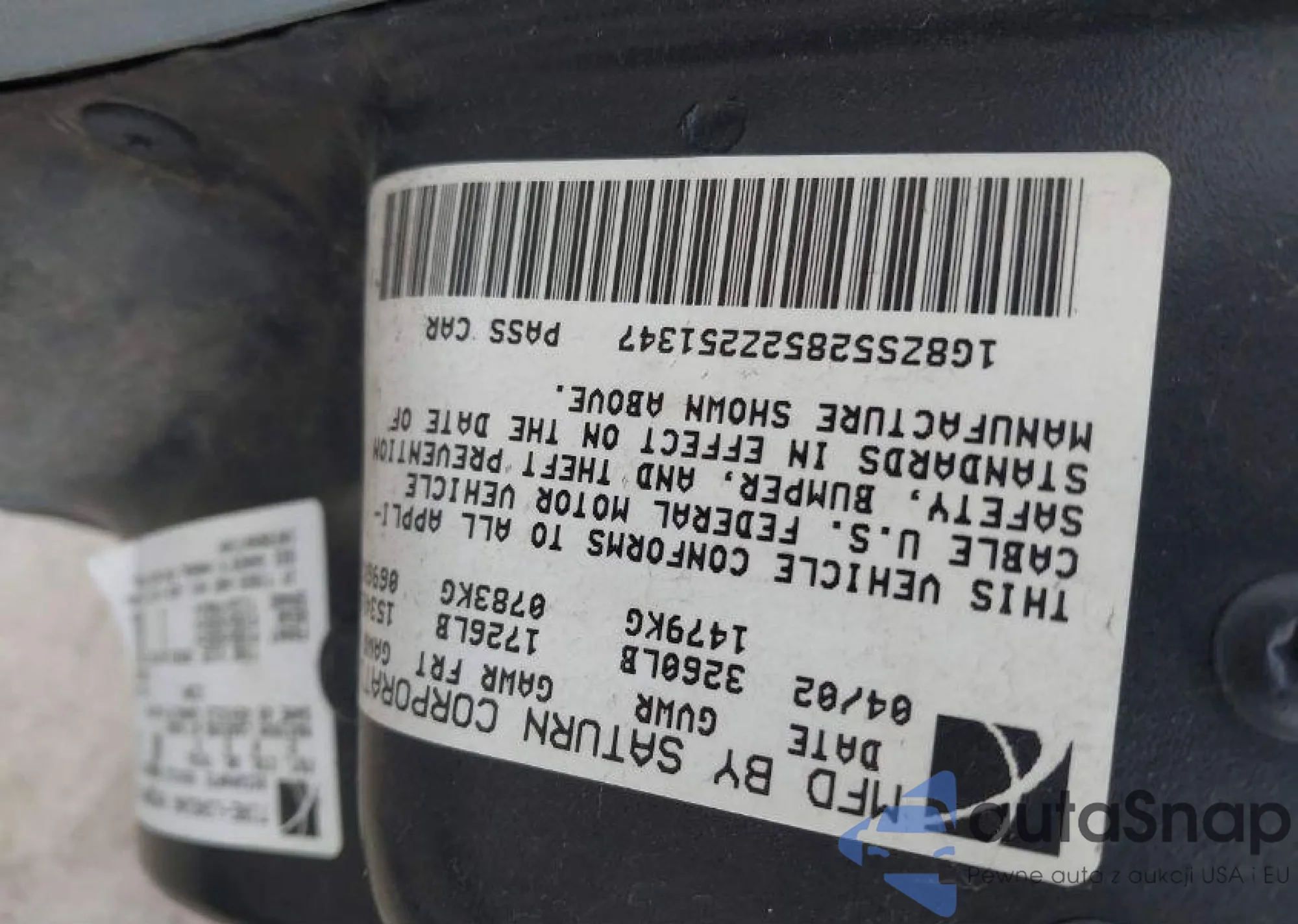 2002 Saturn Sl Sl (M5) z USA, uszkodzony, nr VIN 1G8ZS52852Z251347
