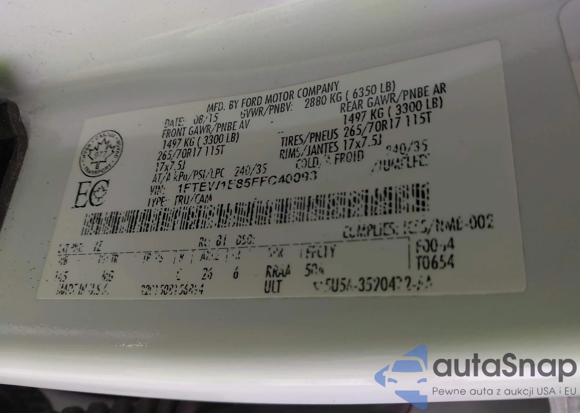 LOT: 41867052 VIN: 1FTEW1E85FFC40093