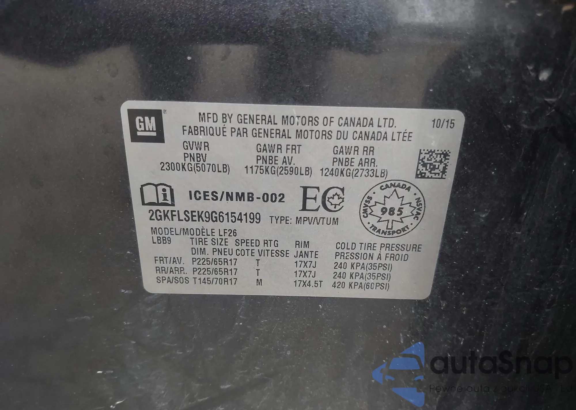 • VIN 2GKFLSEK9G6154199