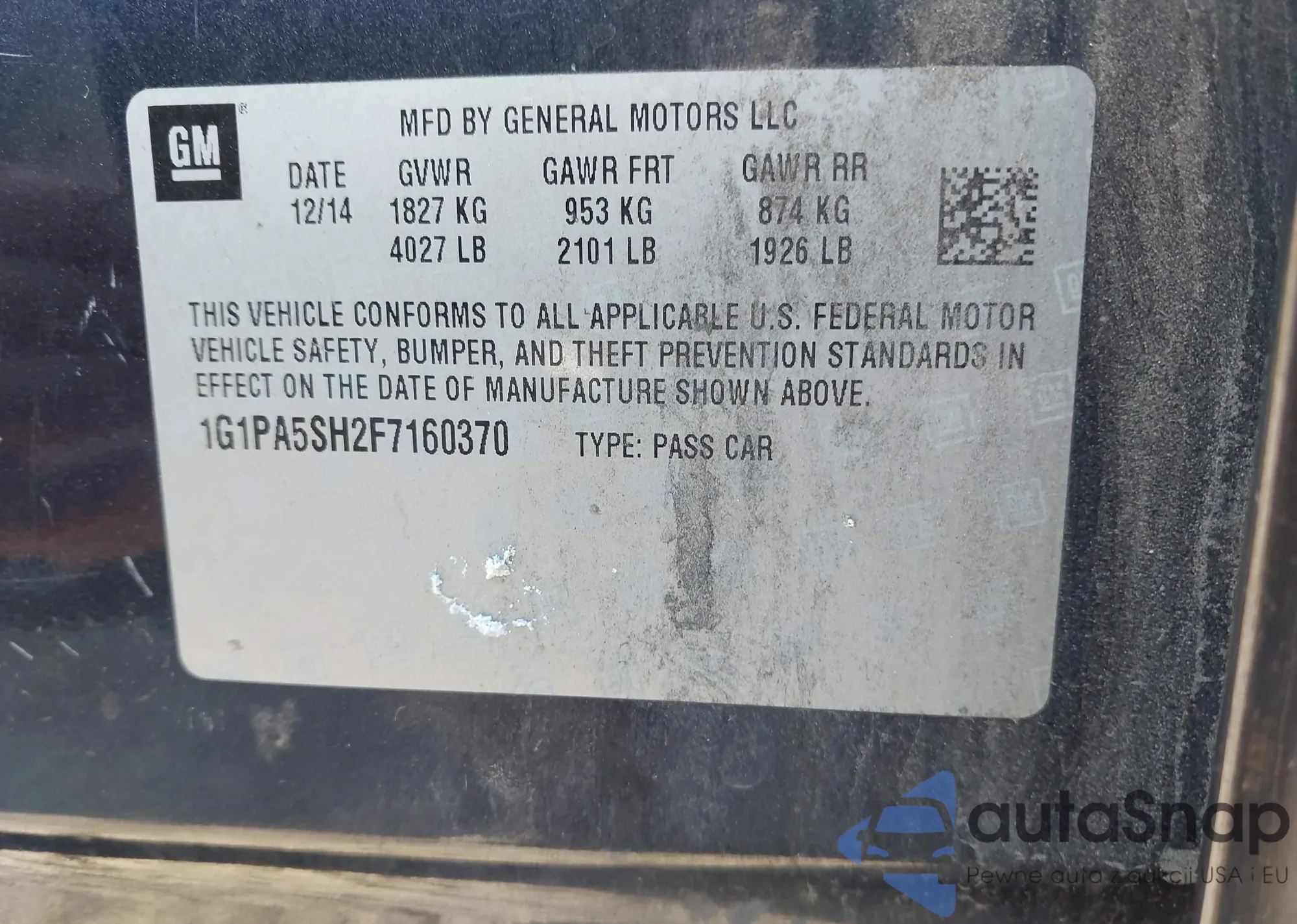 • VIN 1G1PA5SH2F7160370