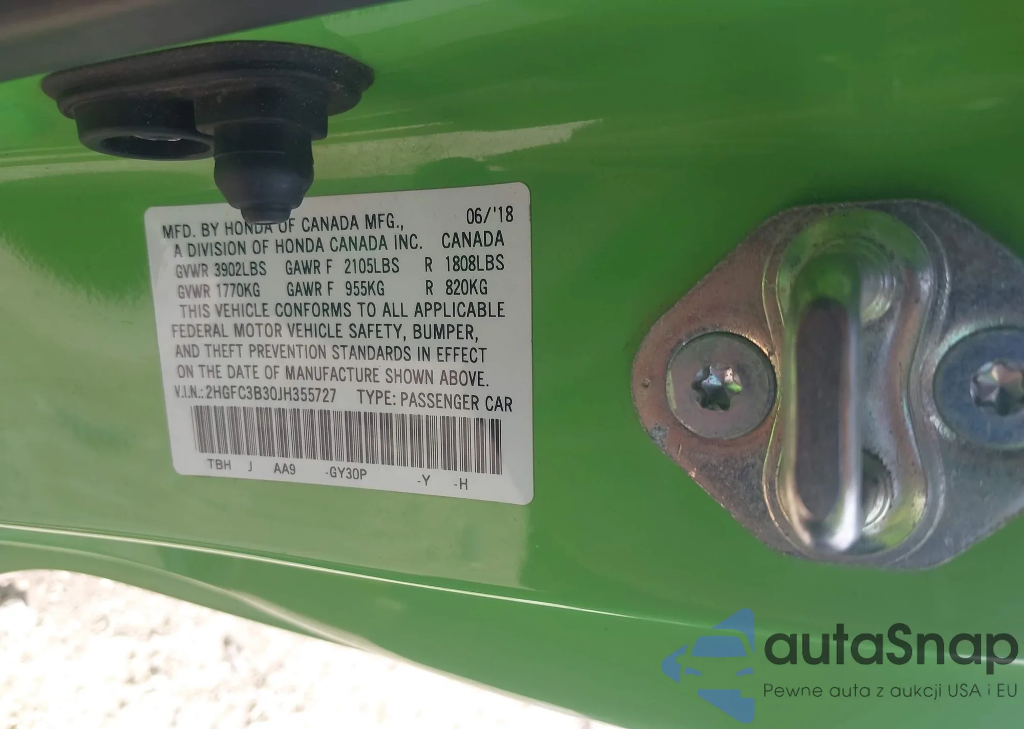• VIN 2HGFC3B30JH355727