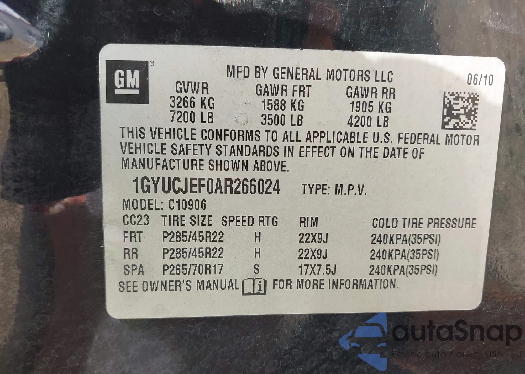 • VIN 5TDYK3EHXDS121201