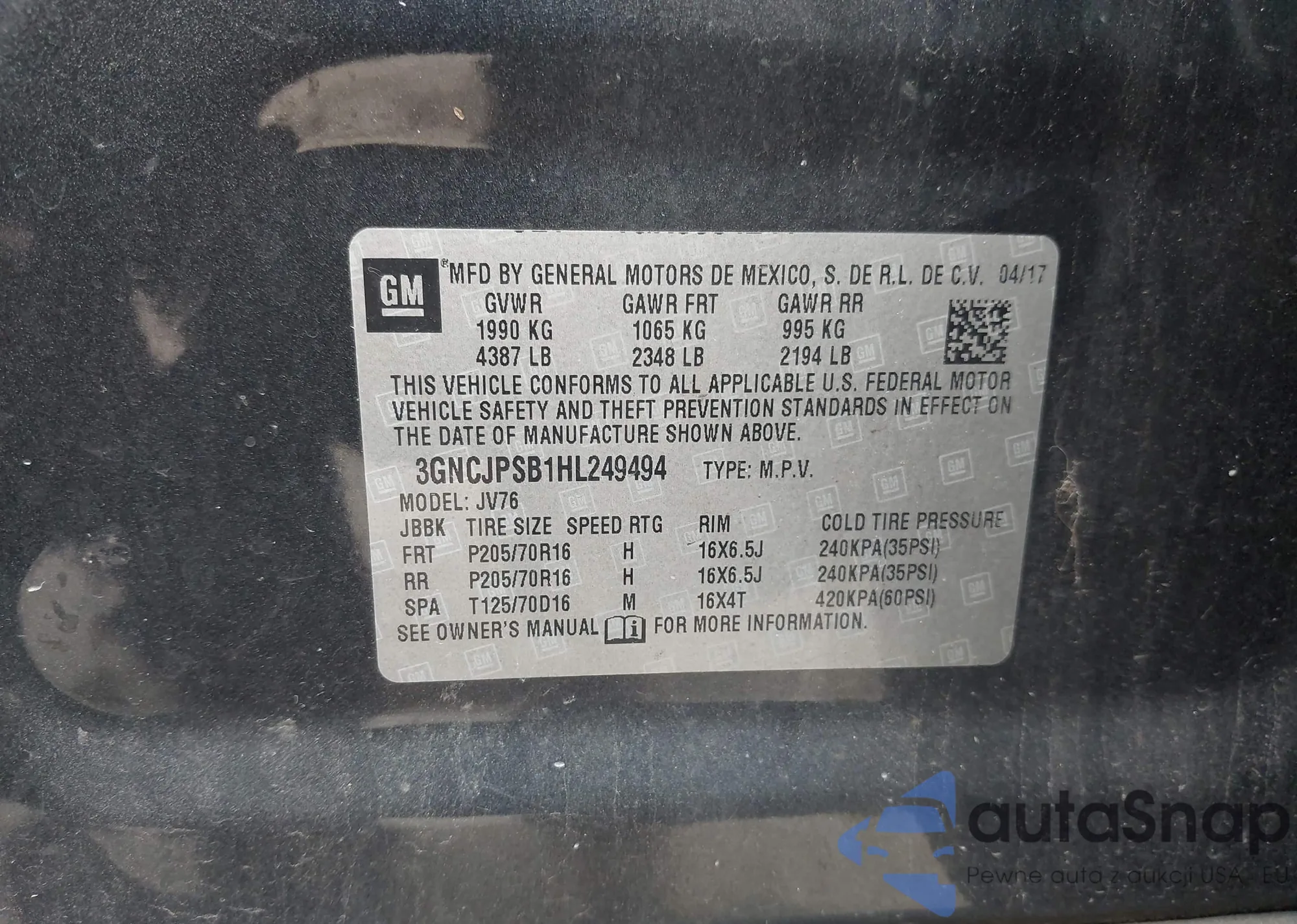 LOT: 43401417 VIN: 2GNAXHEV6M6155529