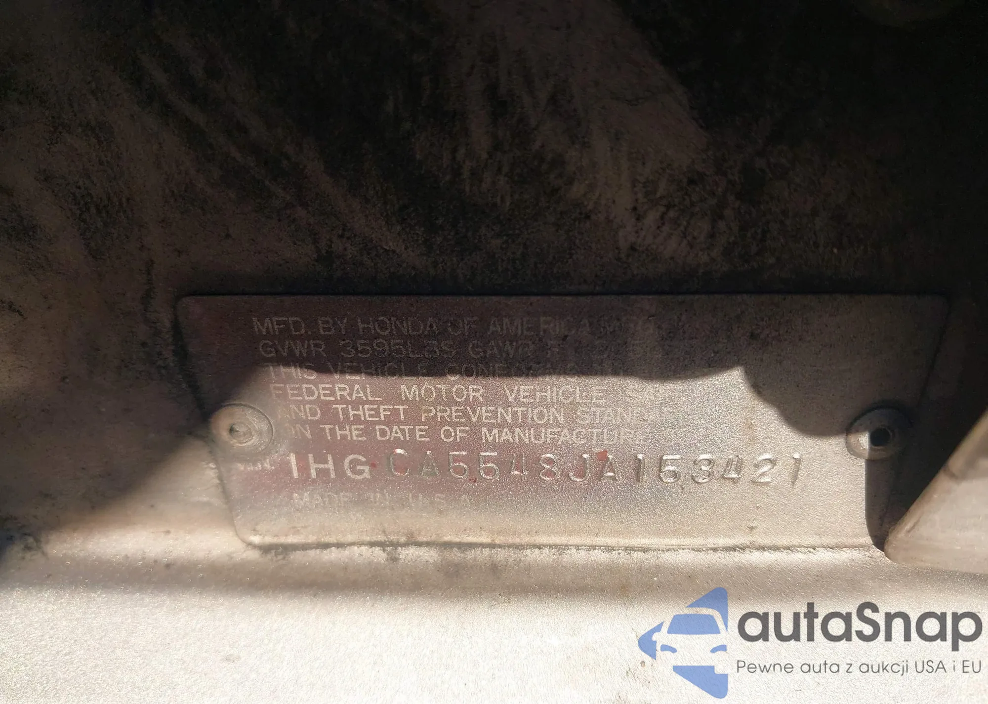 LOT: 43413349 VIN: 1HGCA5548JA153421