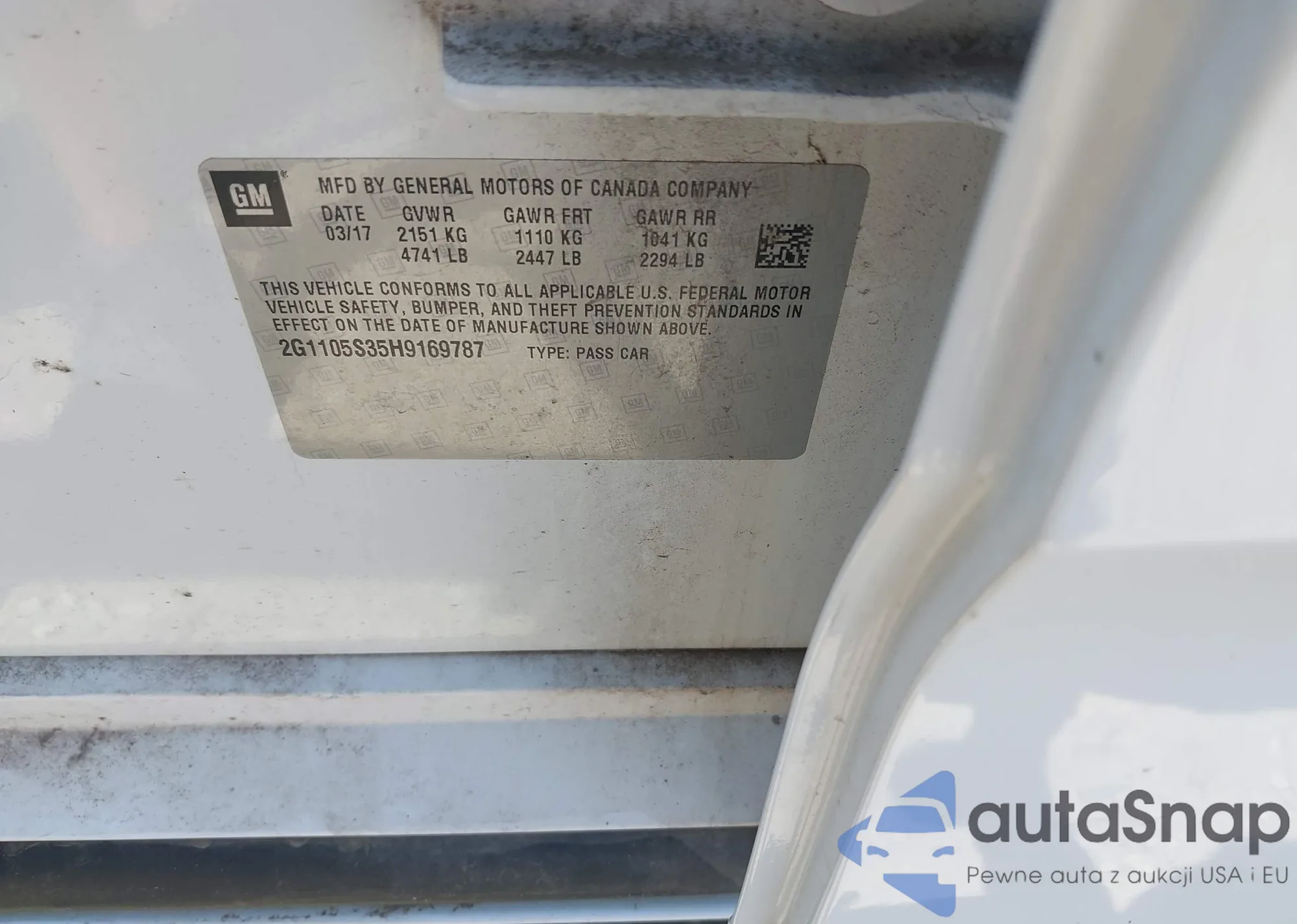 • VIN 2G1105S35H9169787