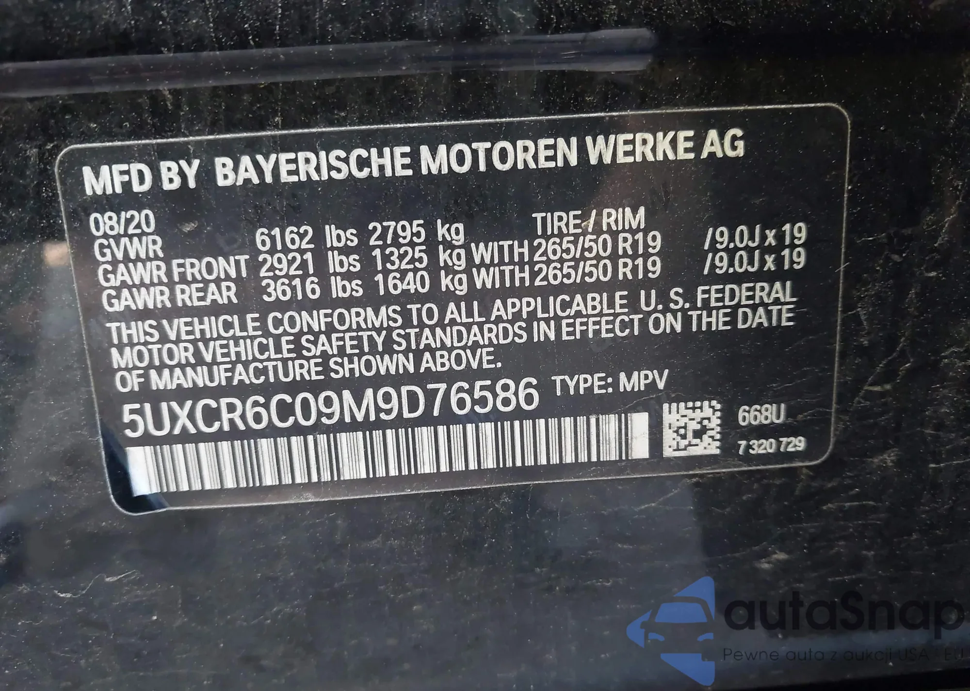 • VIN 5J6RM3H39DL003179