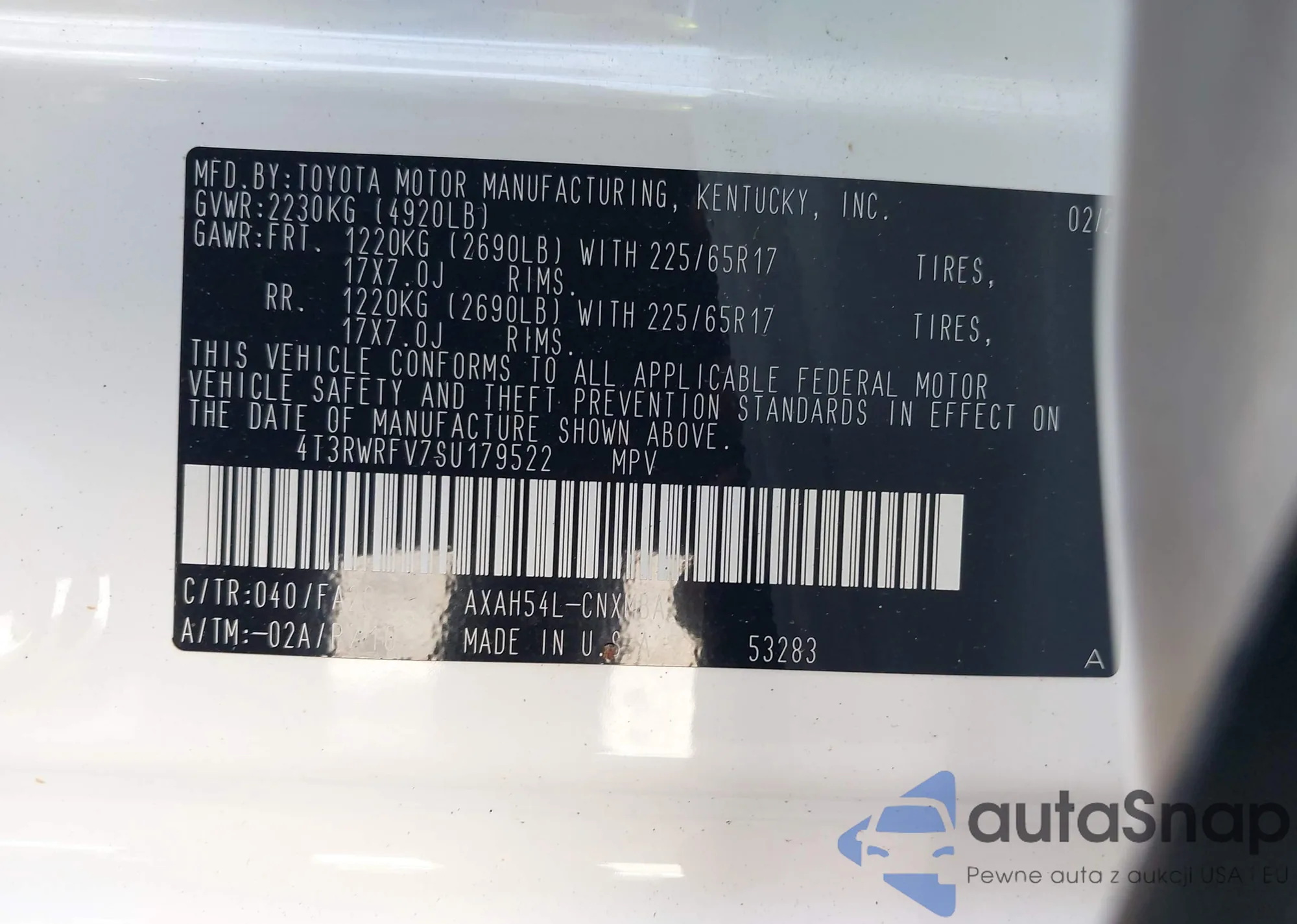 LOT: 43091320 VIN: 4T3RWRFV7SU179522