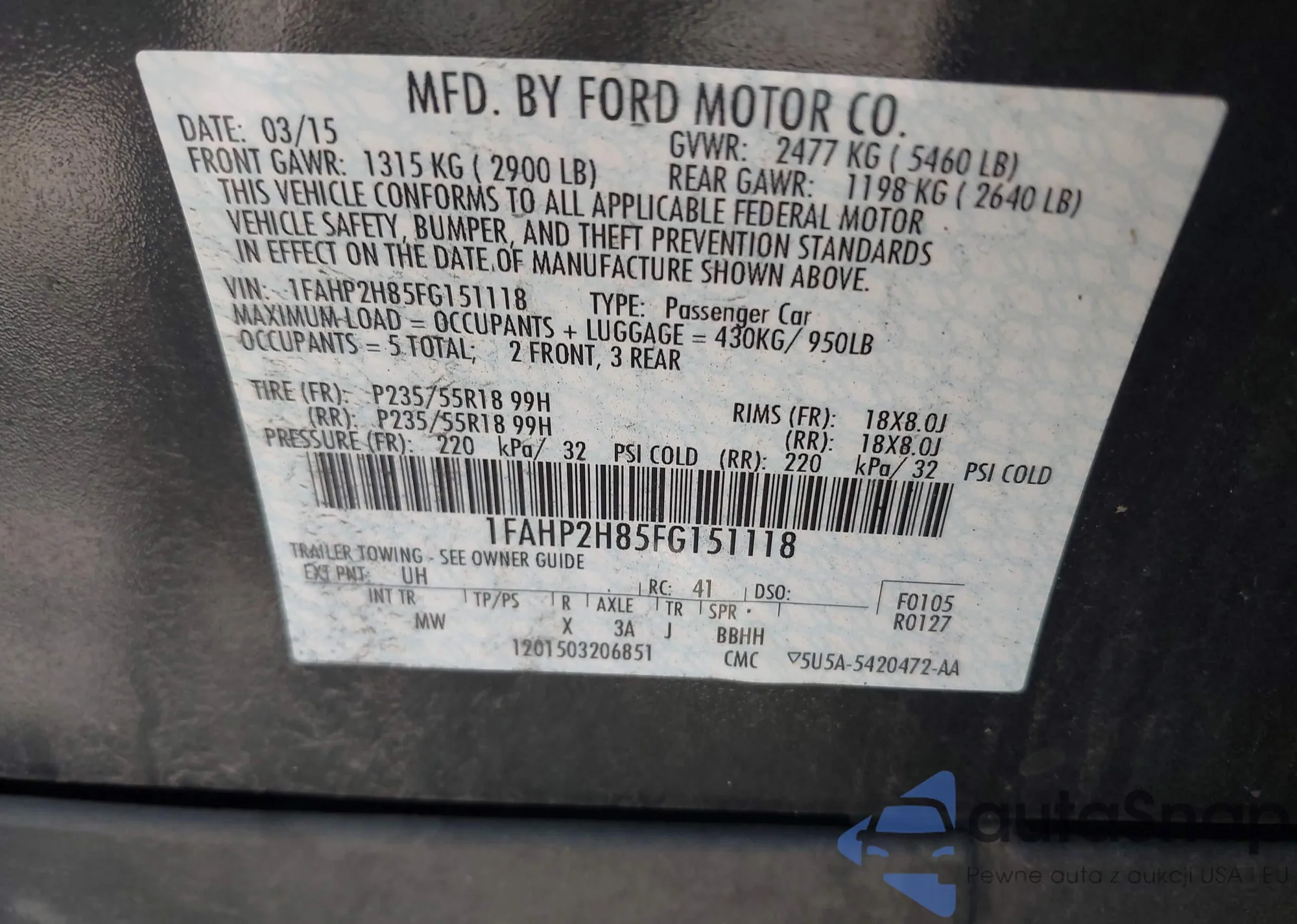 LOT: 43125864 VIN: 1G1ZD5ST2KF138857