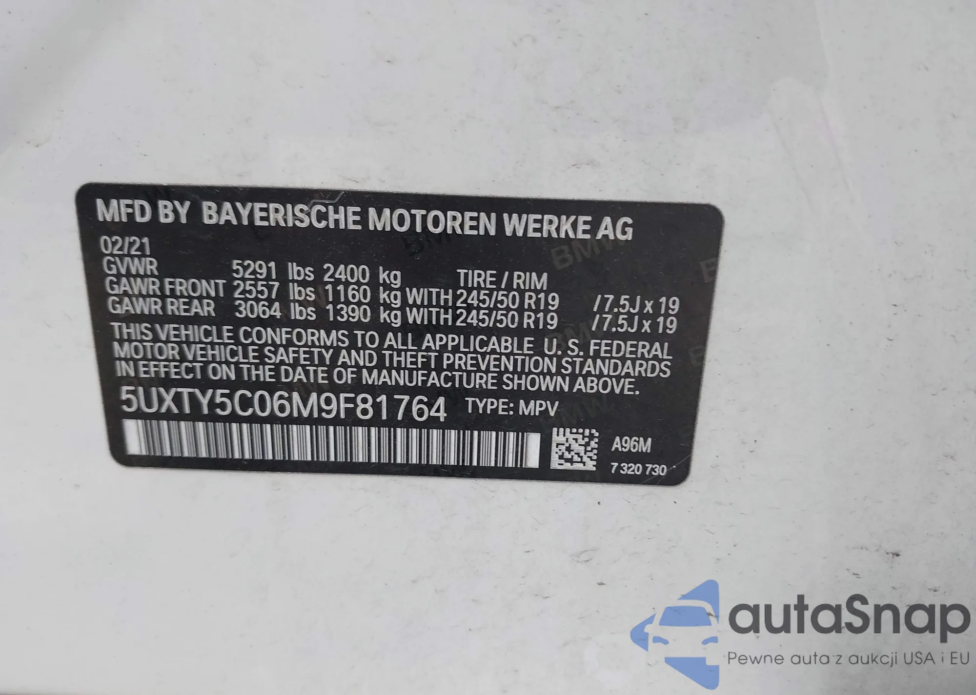 LOT: 43098885 VIN: 5UXTY5C06M9F81764