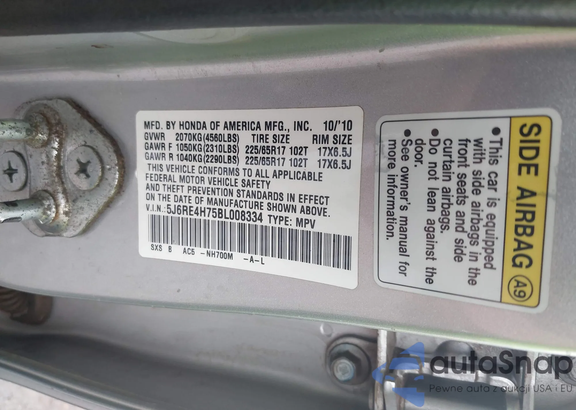 • VIN 5J6RE4H75BL008334