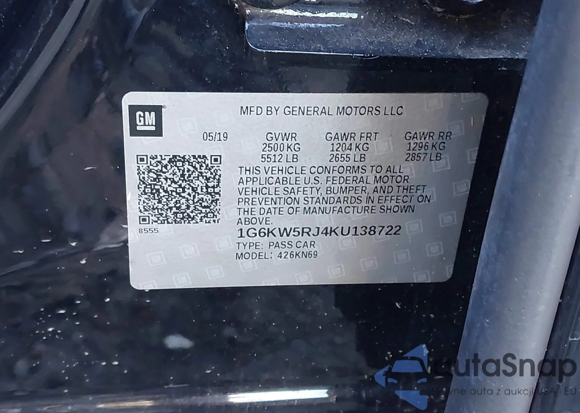 • VIN 1G6KW5RJ4KU138722