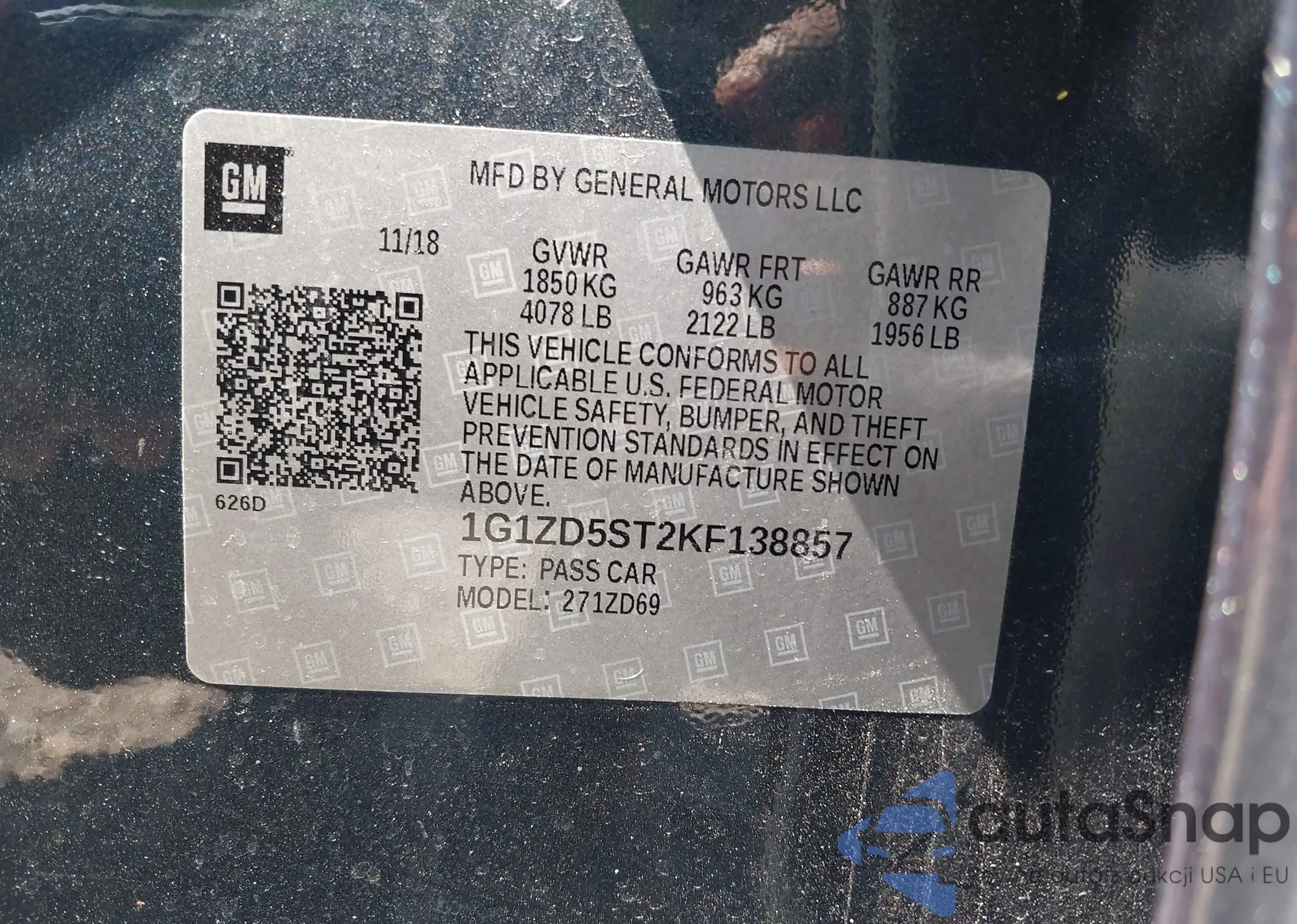 • VIN 1G1ZD5ST2KF138857