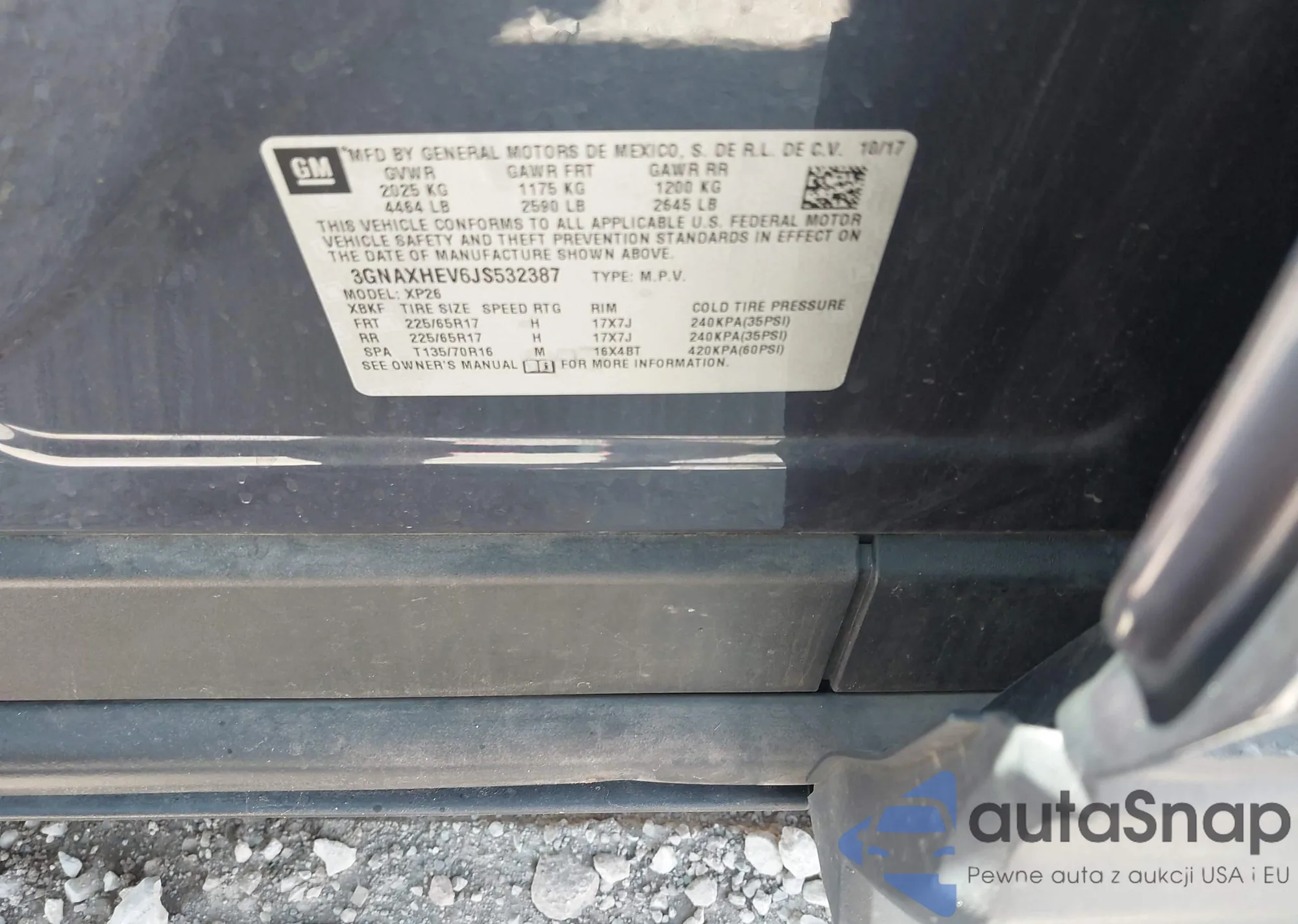 LOT: 43223356 VIN: 3GNAXHEV6JS532387