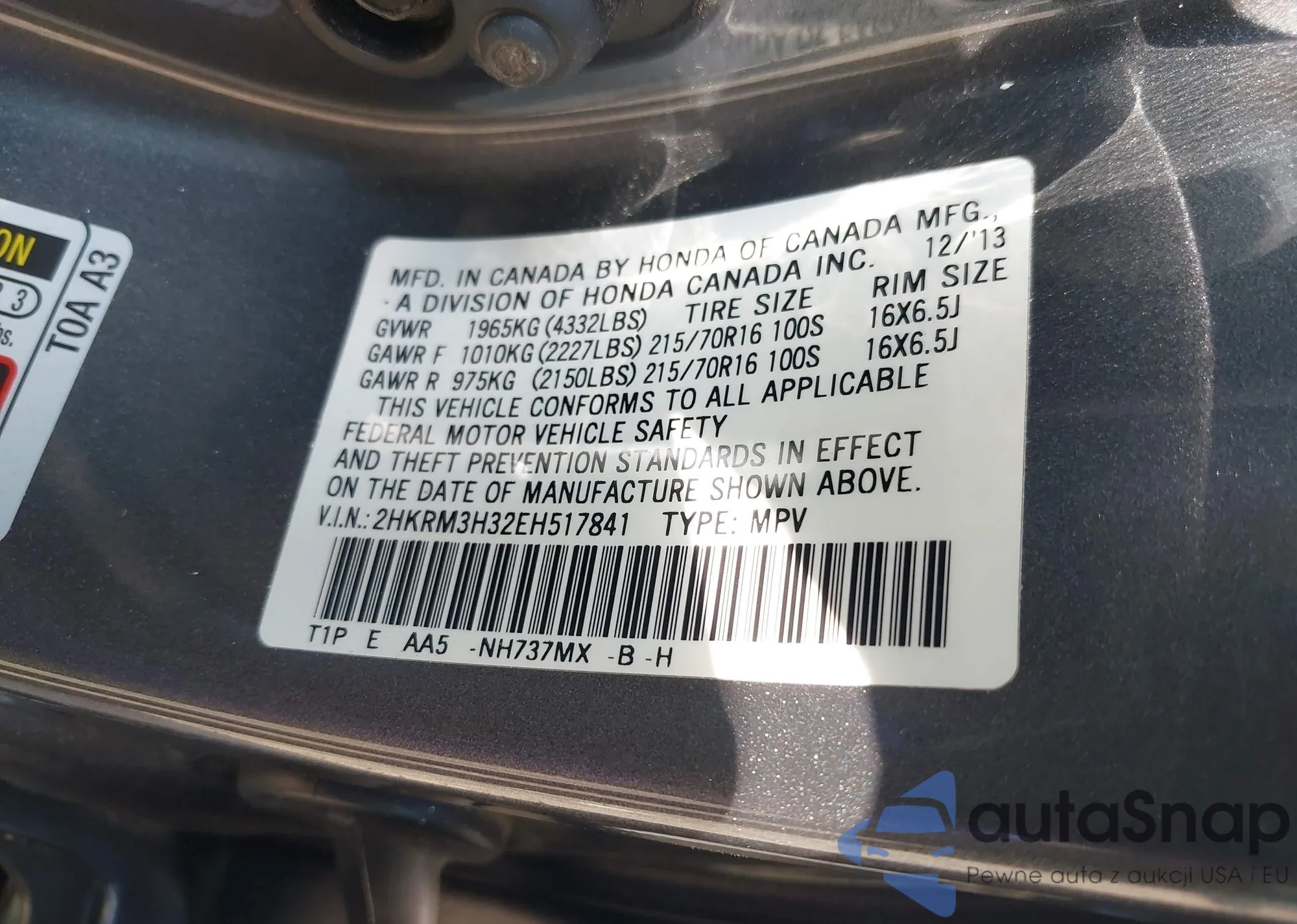 • VIN 2HKRM4H31GH617096