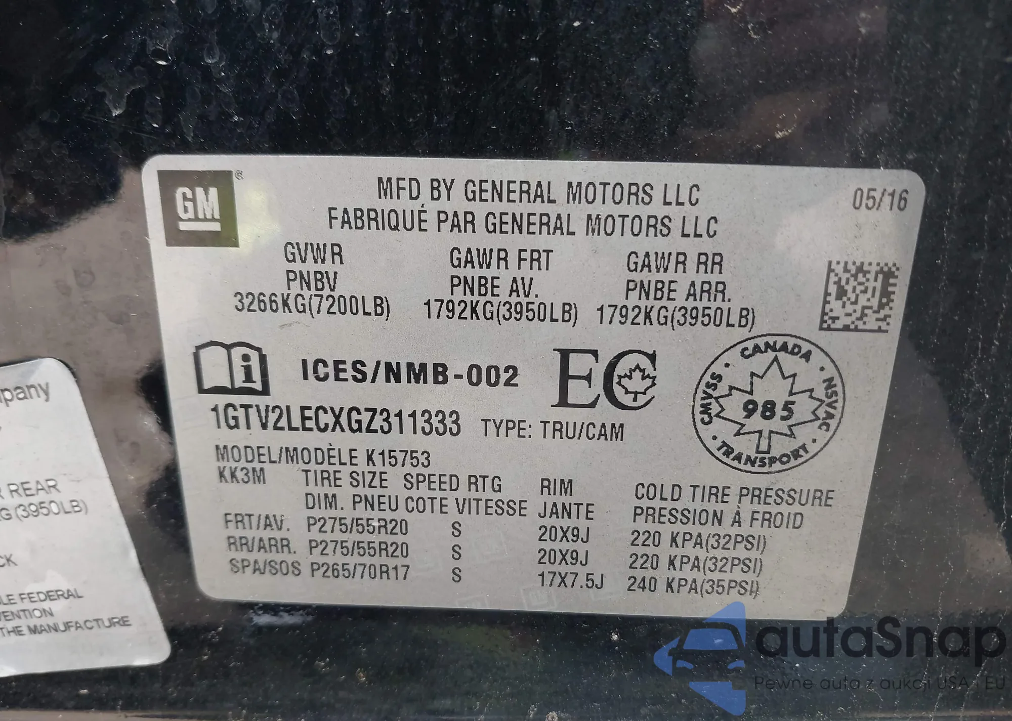 • VIN 2GNALBEK9C1323903