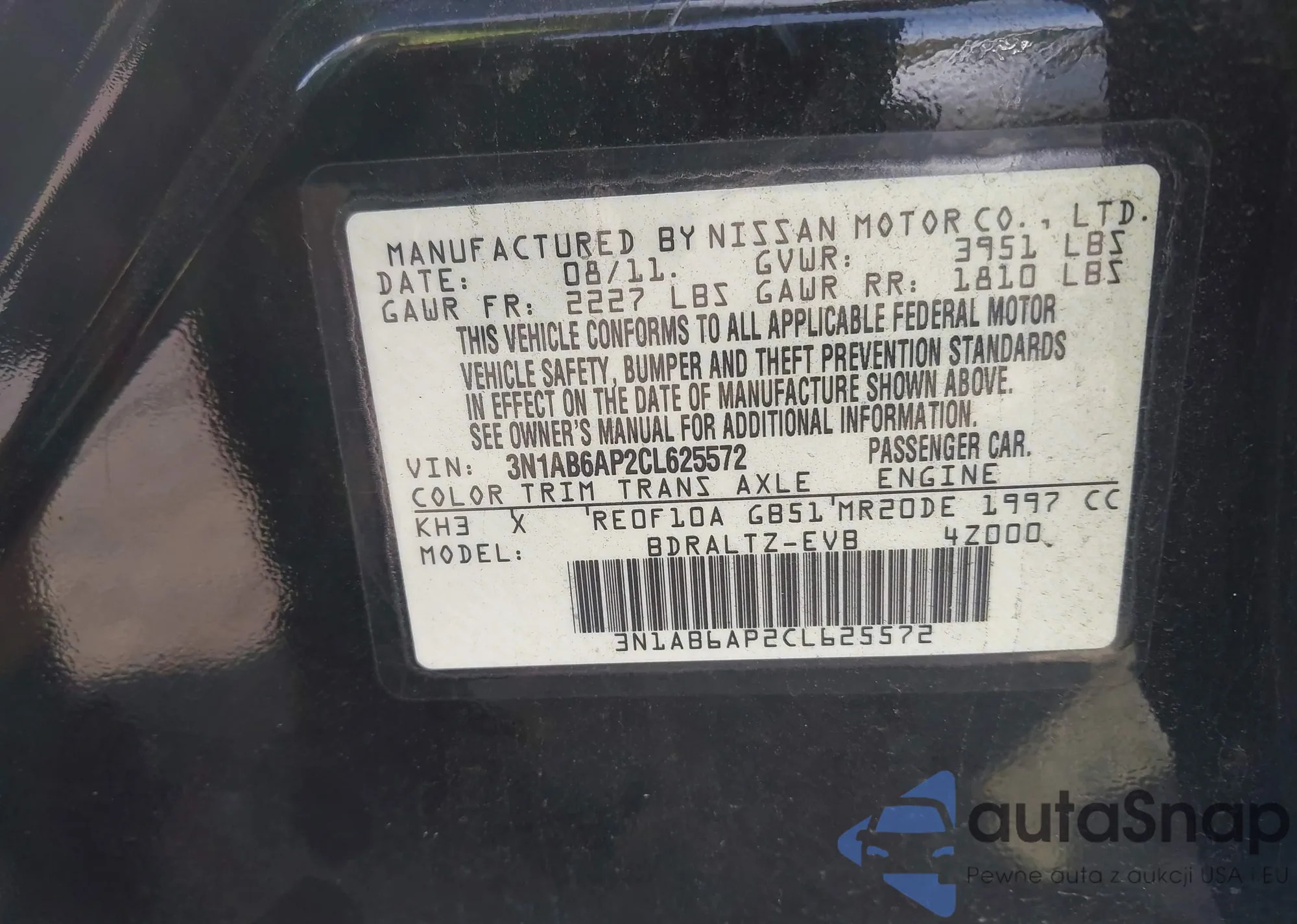 • VIN 3N1AB6AP2CL625572
