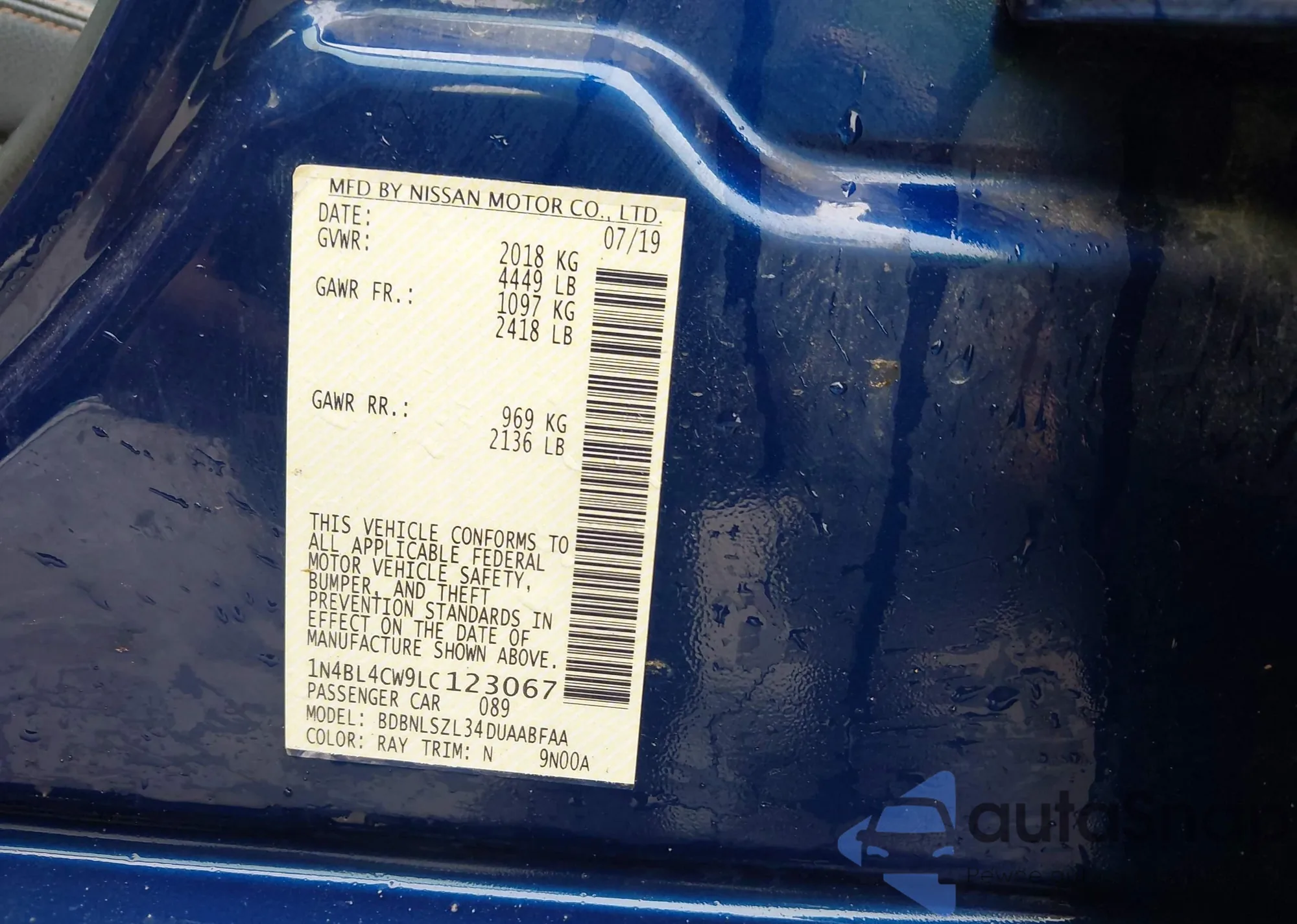 • VIN 1N4BL4CW9LC123067
