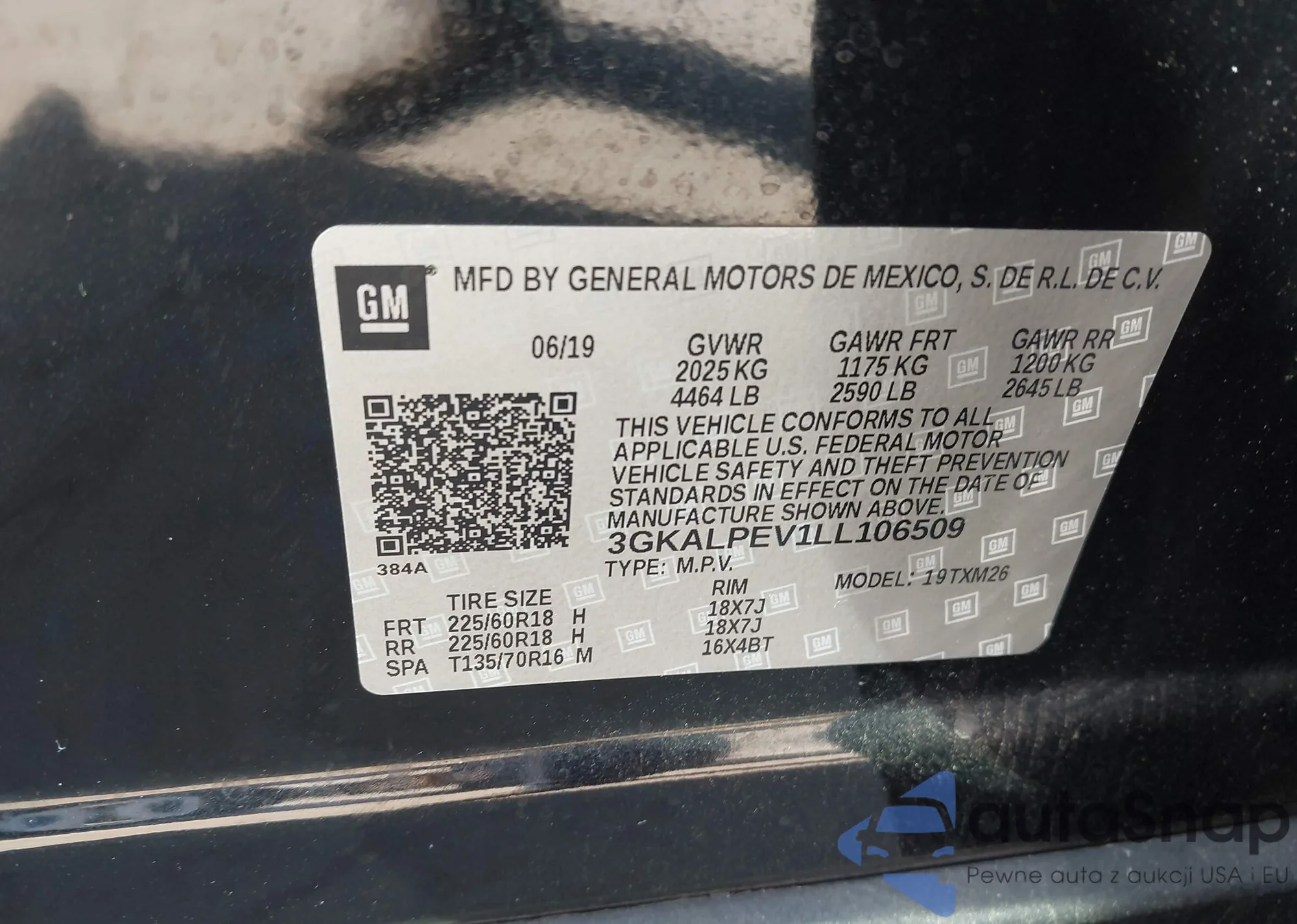LOT: 42909447 VIN: 3GNCJRSB2LL216489