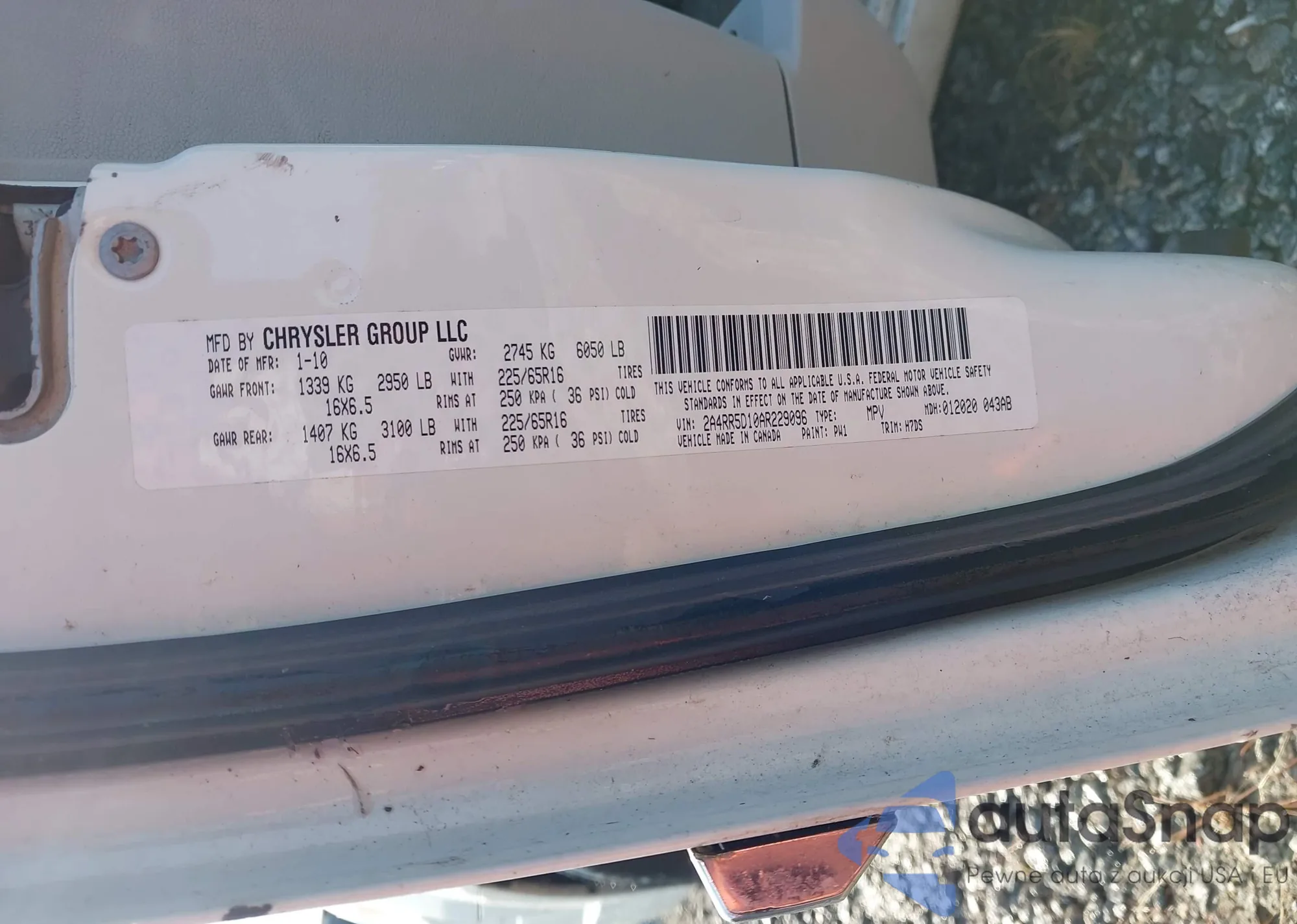 • VIN 2A4RR5D10AR229096