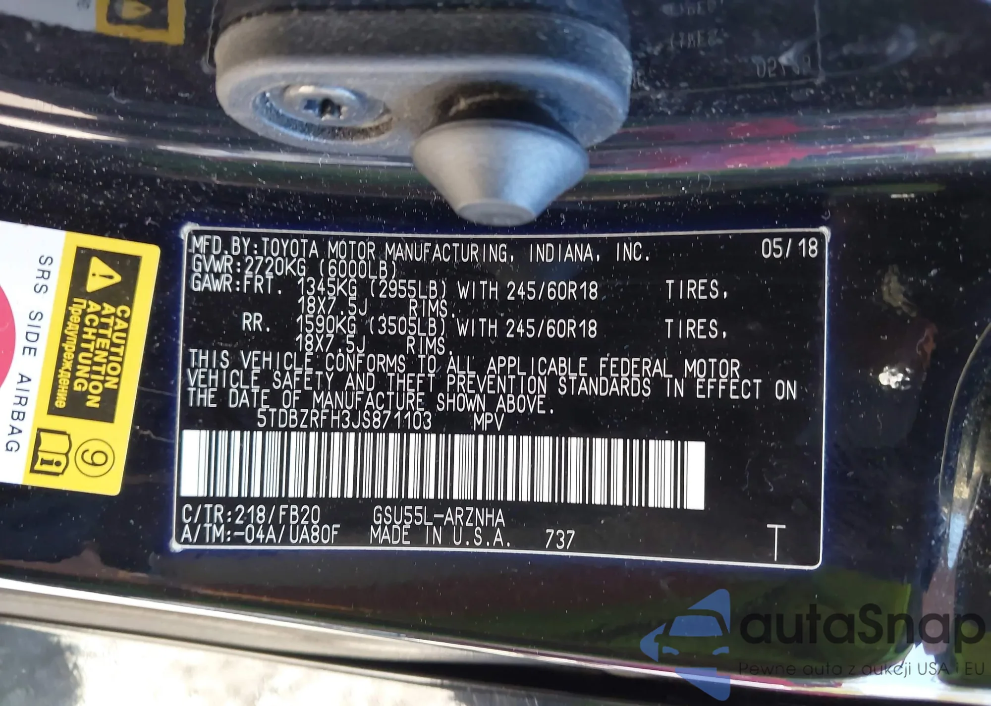 LOT: 43312182 VIN: 5TDBZRFH3JS871103