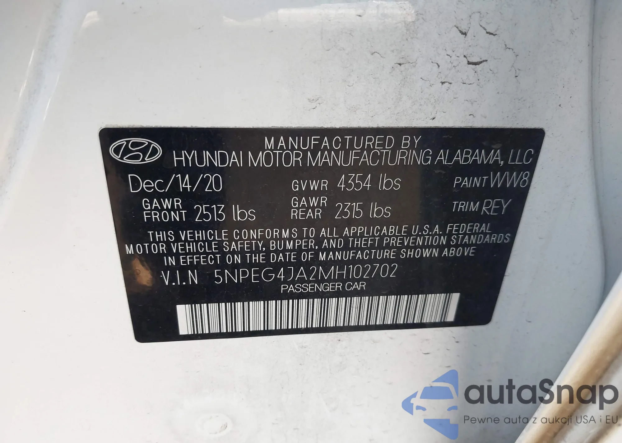 LOT: 43315448 VIN: 5NPEG4JA2MH102702