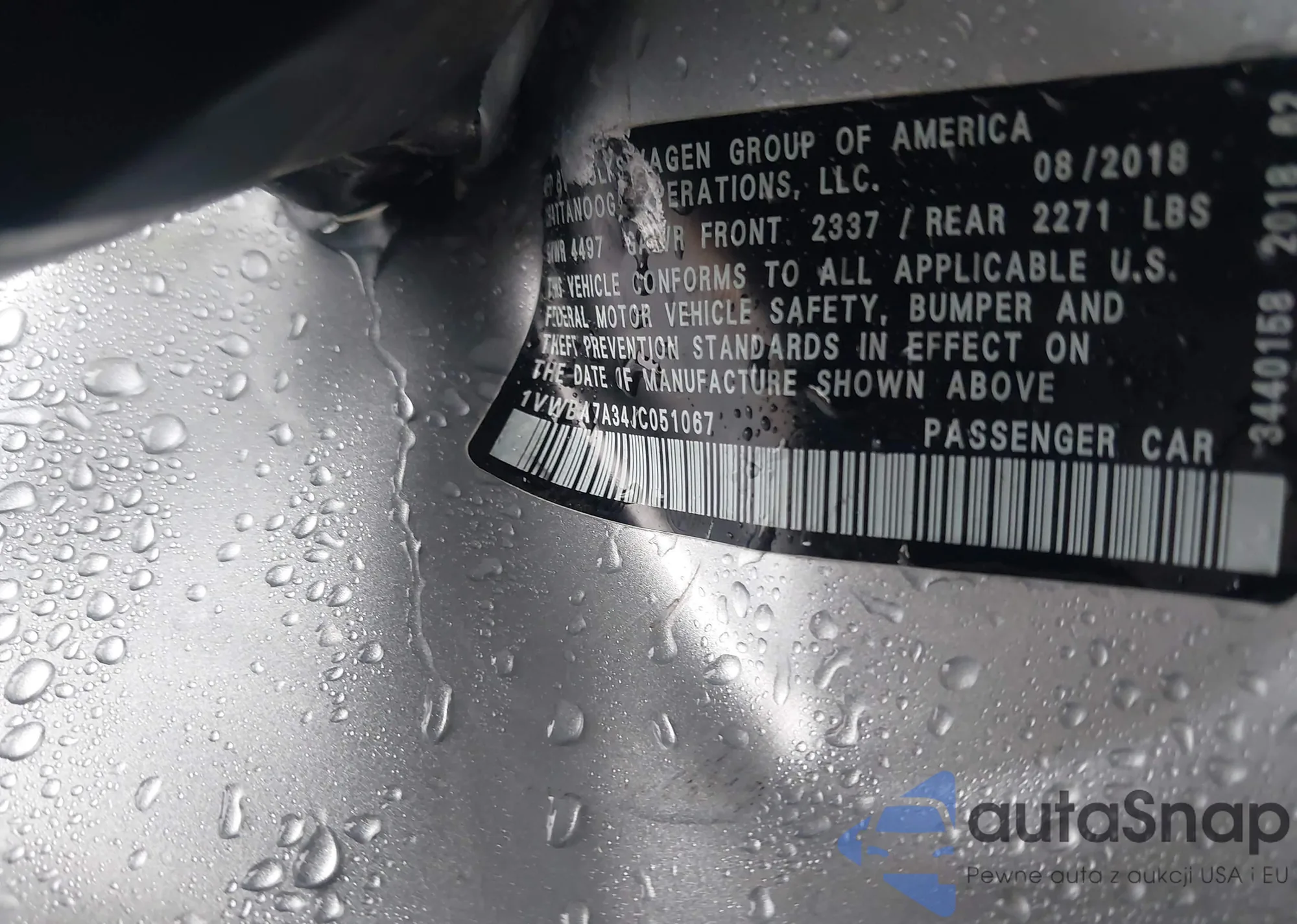 LOT: 43226155 VIN: 1VWBA7A34JC051067