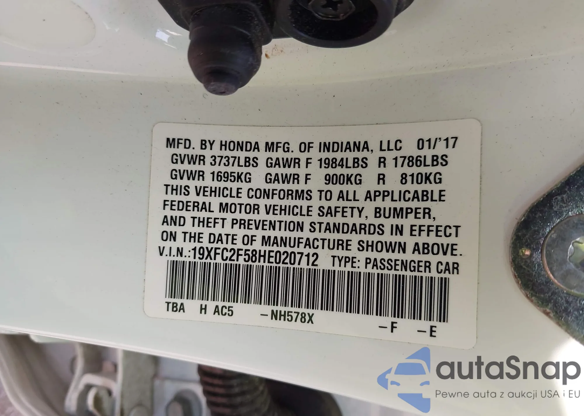 • VIN 19XFC2F58HE020712