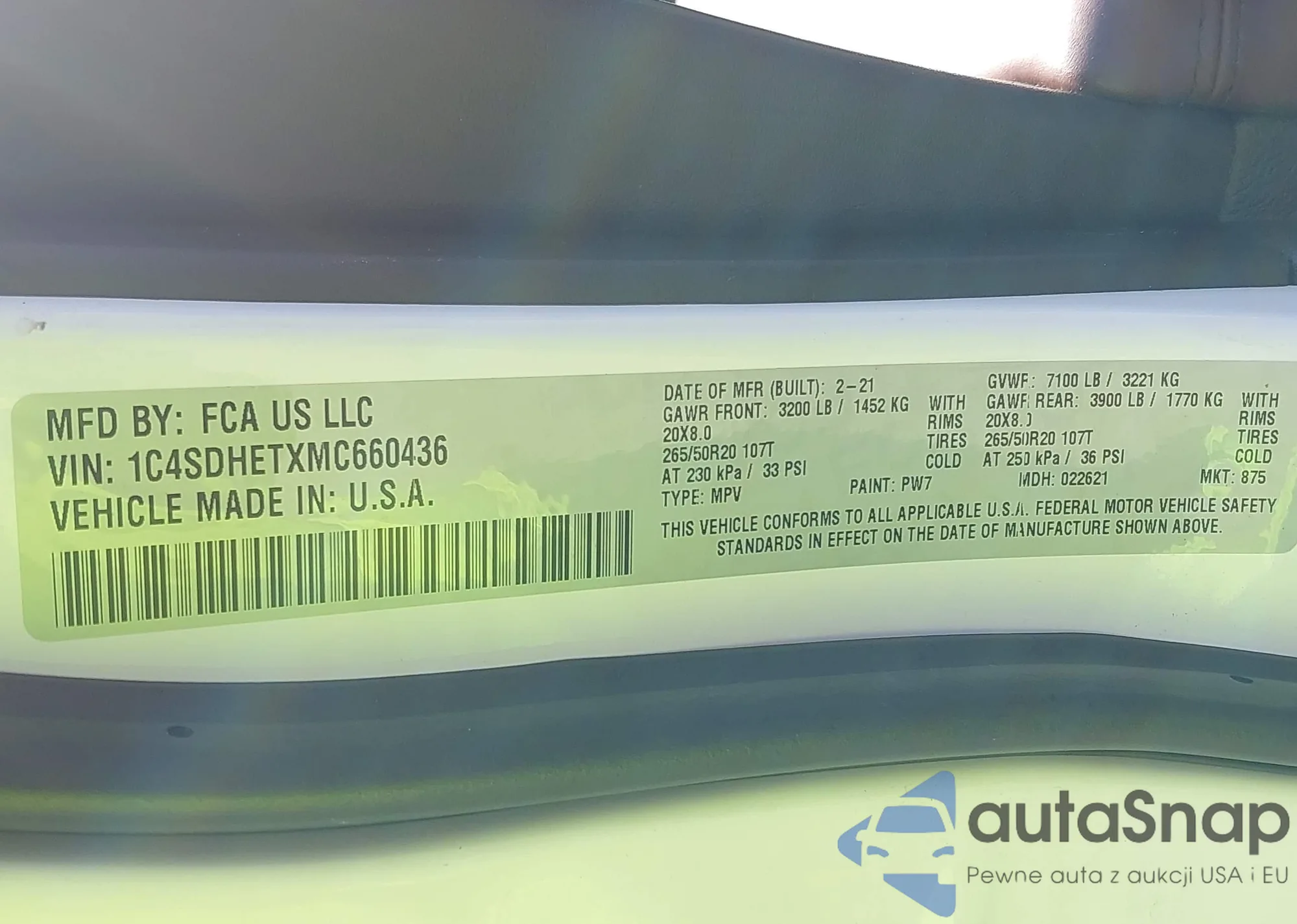 • VIN 1C4SDHETXMC660436
