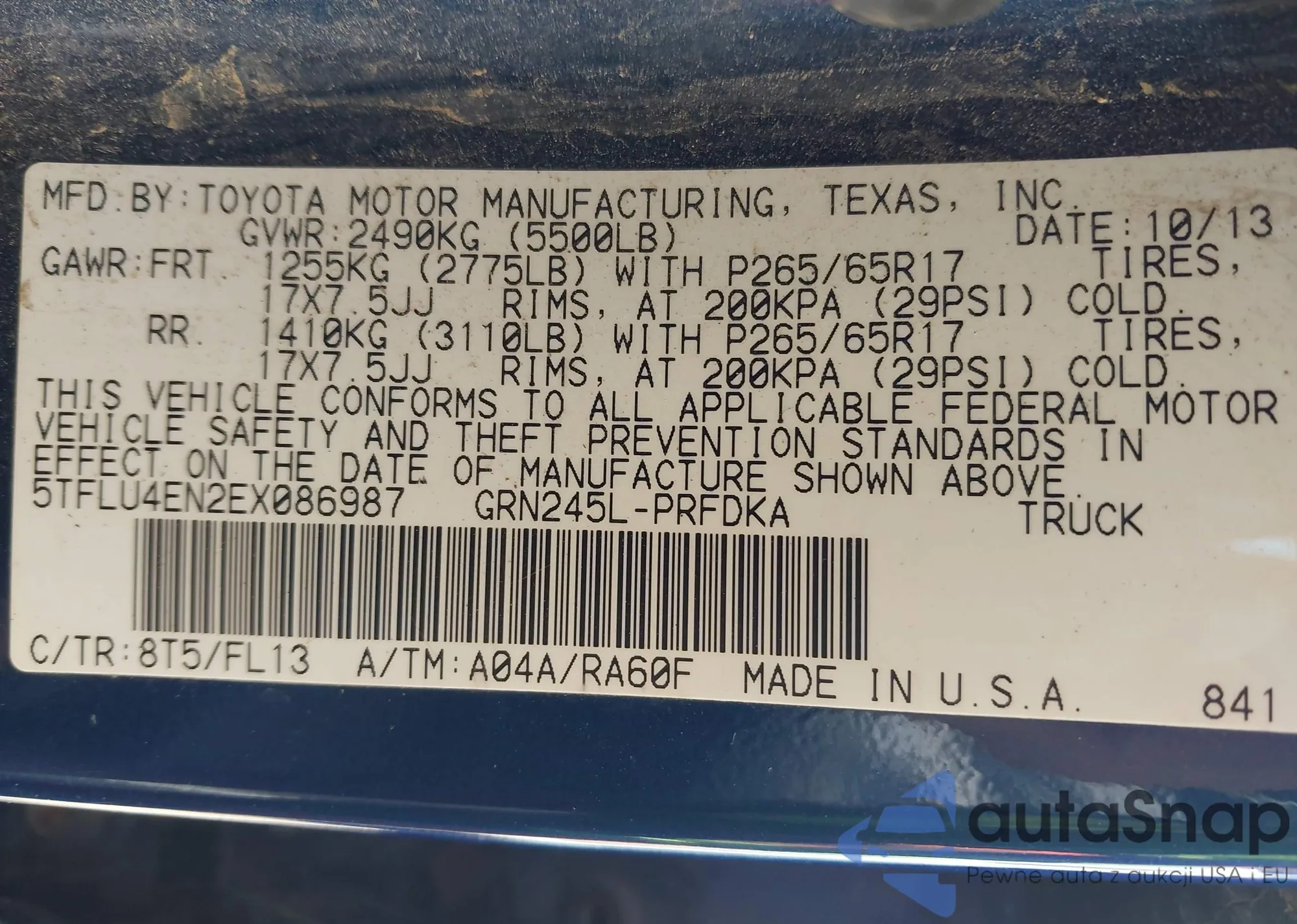 • VIN 5TEUU42N68Z472835